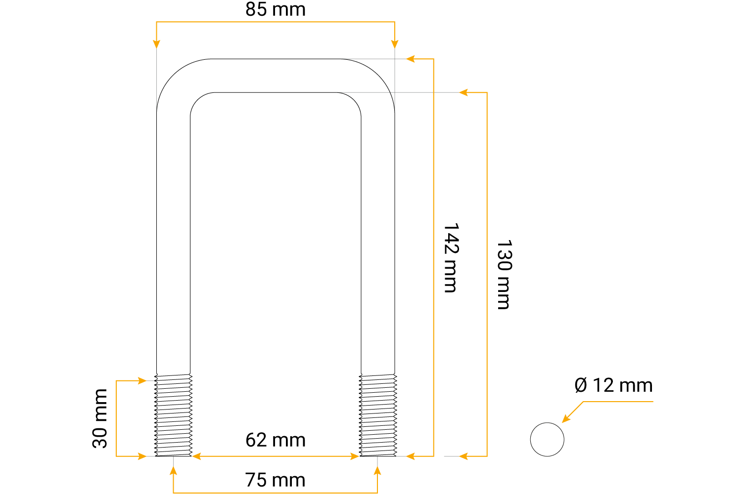 U-boulon / étrier M12 130/62/130