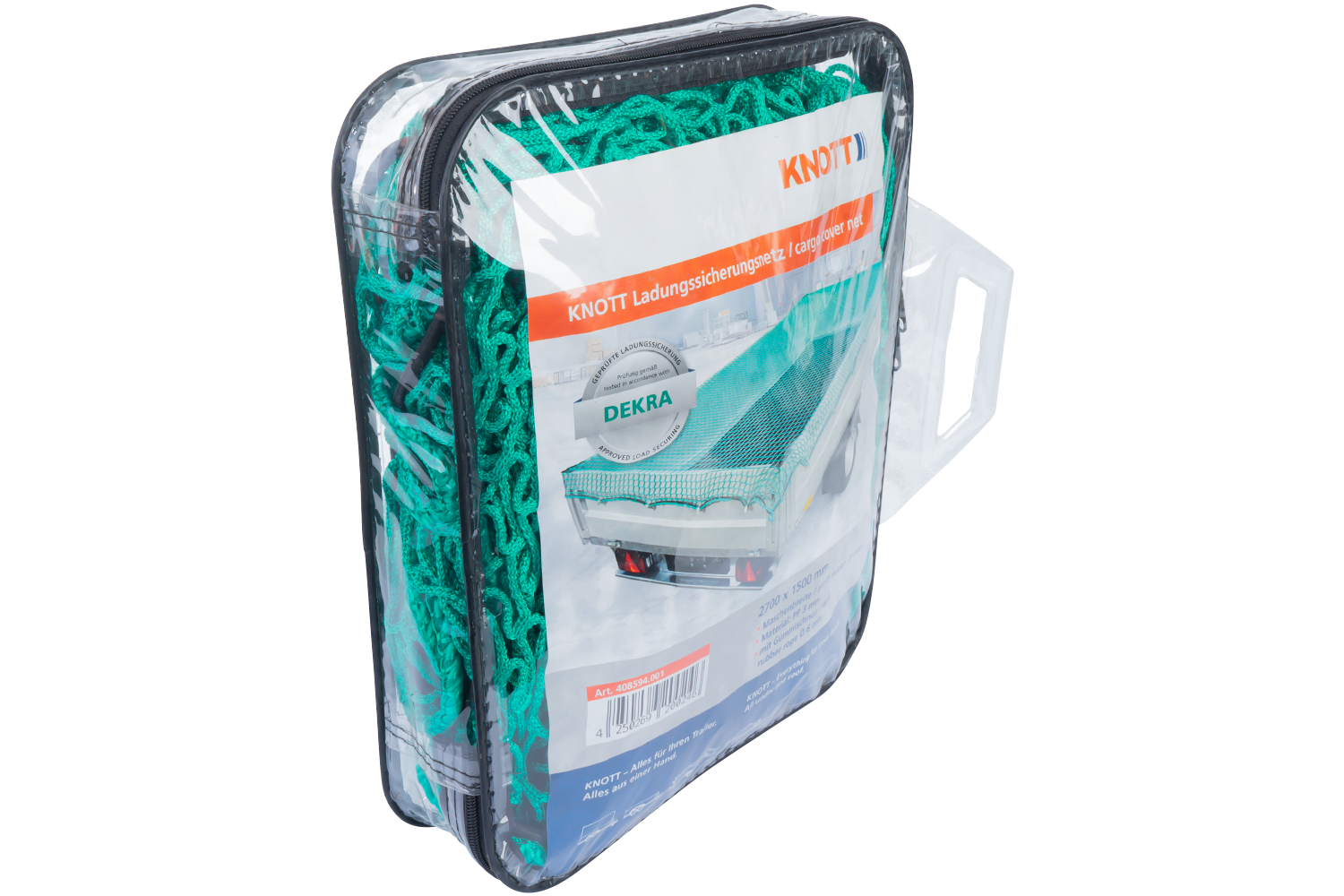 - Filet pour remorques avec bord élastique, fabriqué par KNOTT. Assure le transport en sécurité. Dimensions 1500x2700