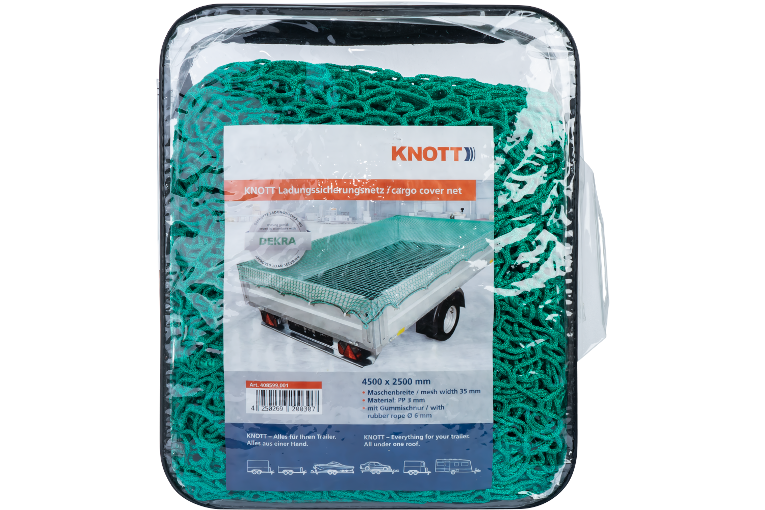 - Filet pour remorques avec bord élastique, fabriqué par KNOTT. Assure le transport en sécurité. Dimensions 2500x4500