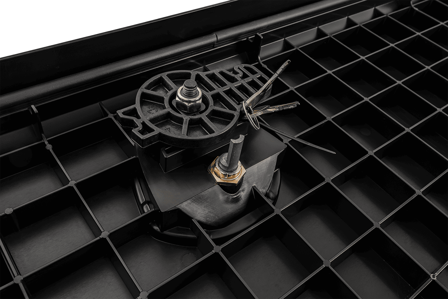 La boîte est fabriquée en polypropylène et en nylon de haute qualité, renforcés par des nervures, ce qui augmente sa durabilité et sa résistance aux dommages mécaniques. Le matériau offre une protection exceptionnelle contre le feu, l'eau, la poussière, le carburant, les rayons UV et les températures extrêmes, ce qui en fait une solution idéale pour une utilisation intensive dans des conditions difficiles. Le couvercle de la boîte est équipé d'un joint en caoutchouc qui assure une étanchéité totale, empêchant l'eau et la poussière de pénétrer à l'intérieur. Cette conception protège efficacement les outils et équipements stockés contre les agressions extérieures néfastes, ce qui est particulièrement important en cas d'utilisation intensive sur des chantiers ou dans des conditions météorologiques difficiles.