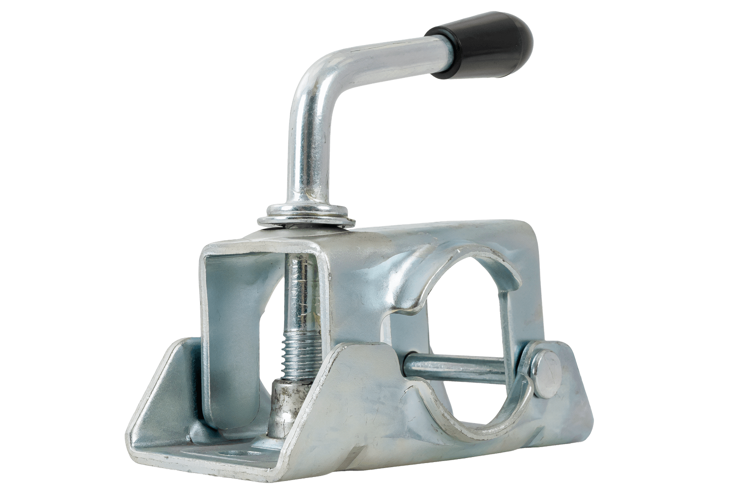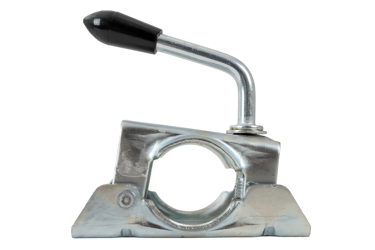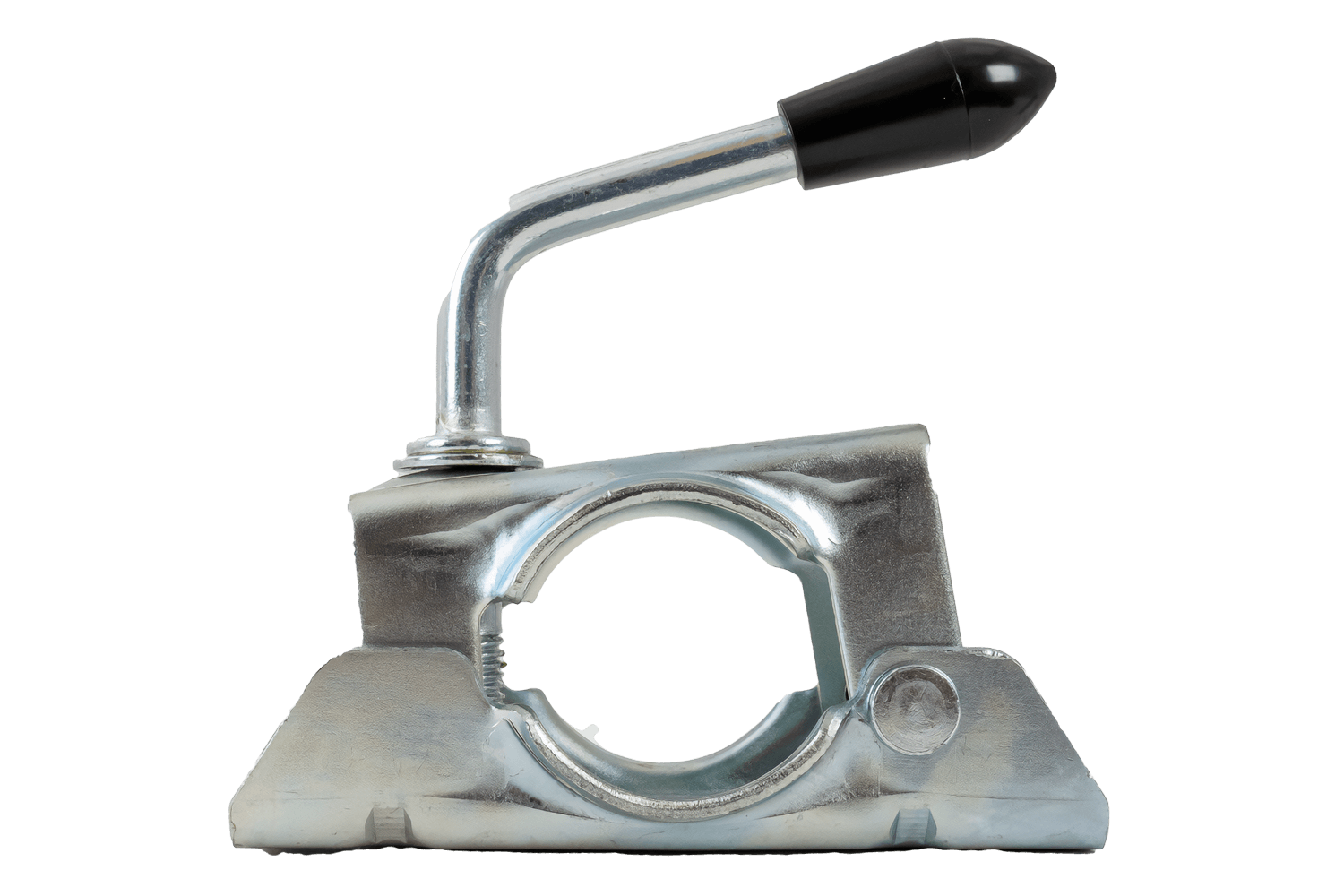 - Bride de roue jockey 400305.001 avec tube de 48 mm de diamètre. Le levier de pression permet un verrouillage, un réglage en hauteur ou un démontage rapide de la roue, stabilisant ainsi la remorque à l'arrêt. Conçue pour les remorques cargo, les remorques