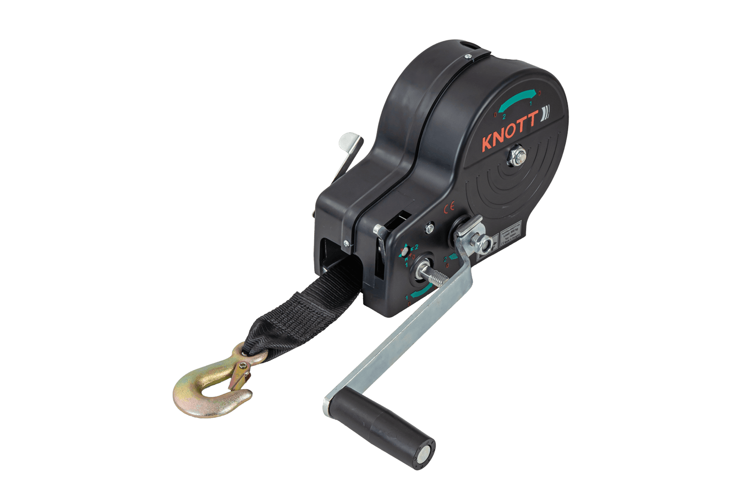 - Le treuil à câble KNOTT 6X0017.311 est un treuil manuel robuste, équipé d'un crochet et d'un carter fonctionnels, conçu pour la traction contrôlée de charges. Il offre une force de traction de 900 kg et est livré avec une sangle de 7 m de long et 50 mm de