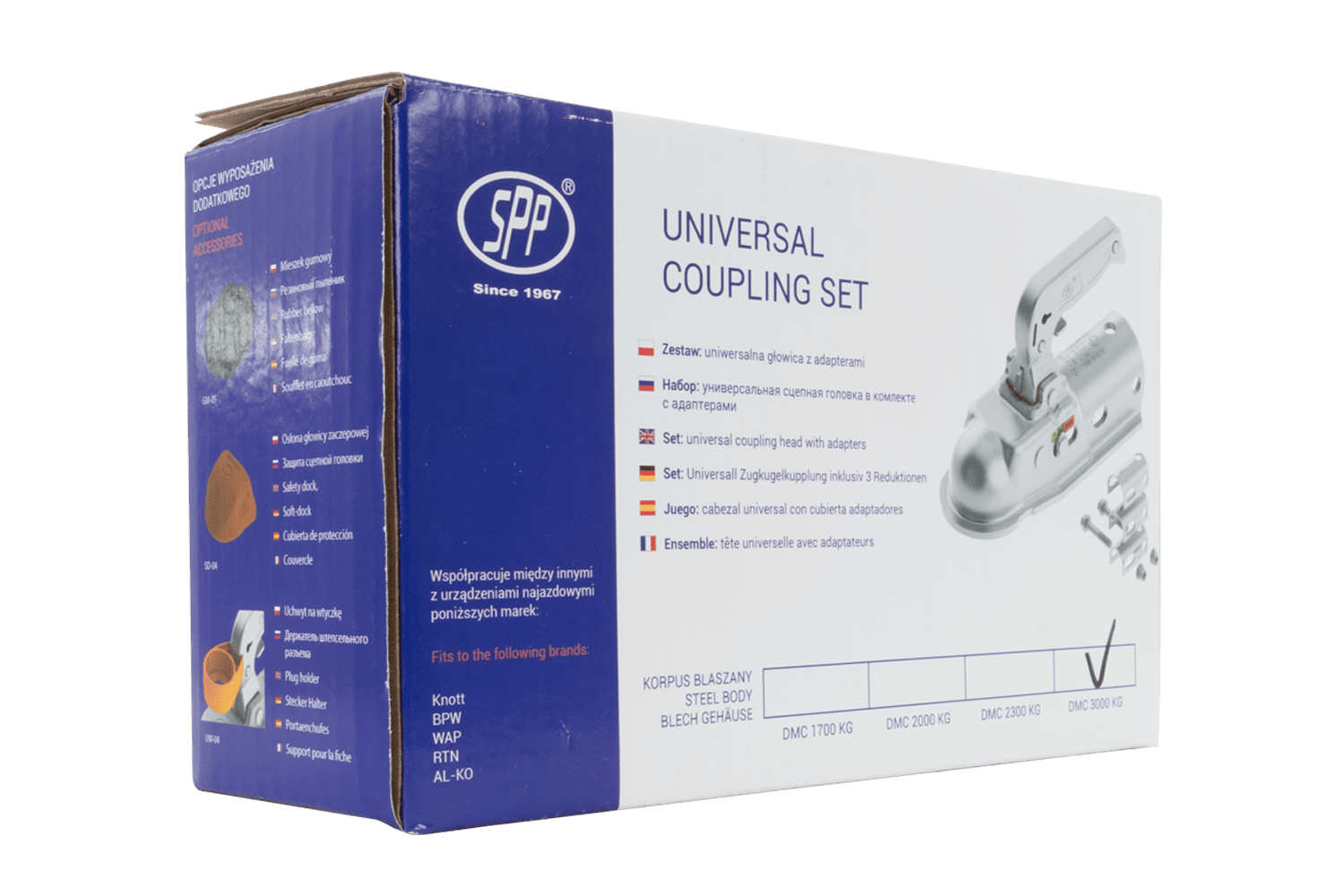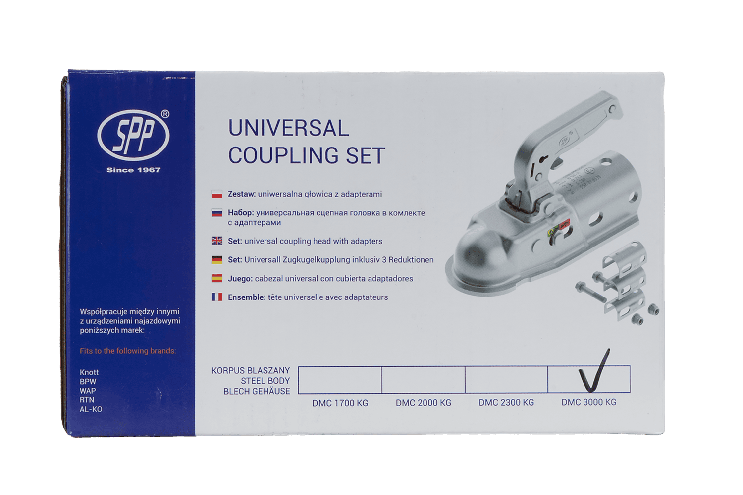 - L'attelage à boule BC-3000.1D-00-00 est conçu pour les remorques jusqu'à 3 000 kg. La tête d'attelage est montée sur un timon tubulaire et est fournie avec des adaptateurs permettant la compatibilité avec les dispositifs à inertie dotés d'un tube coulissa