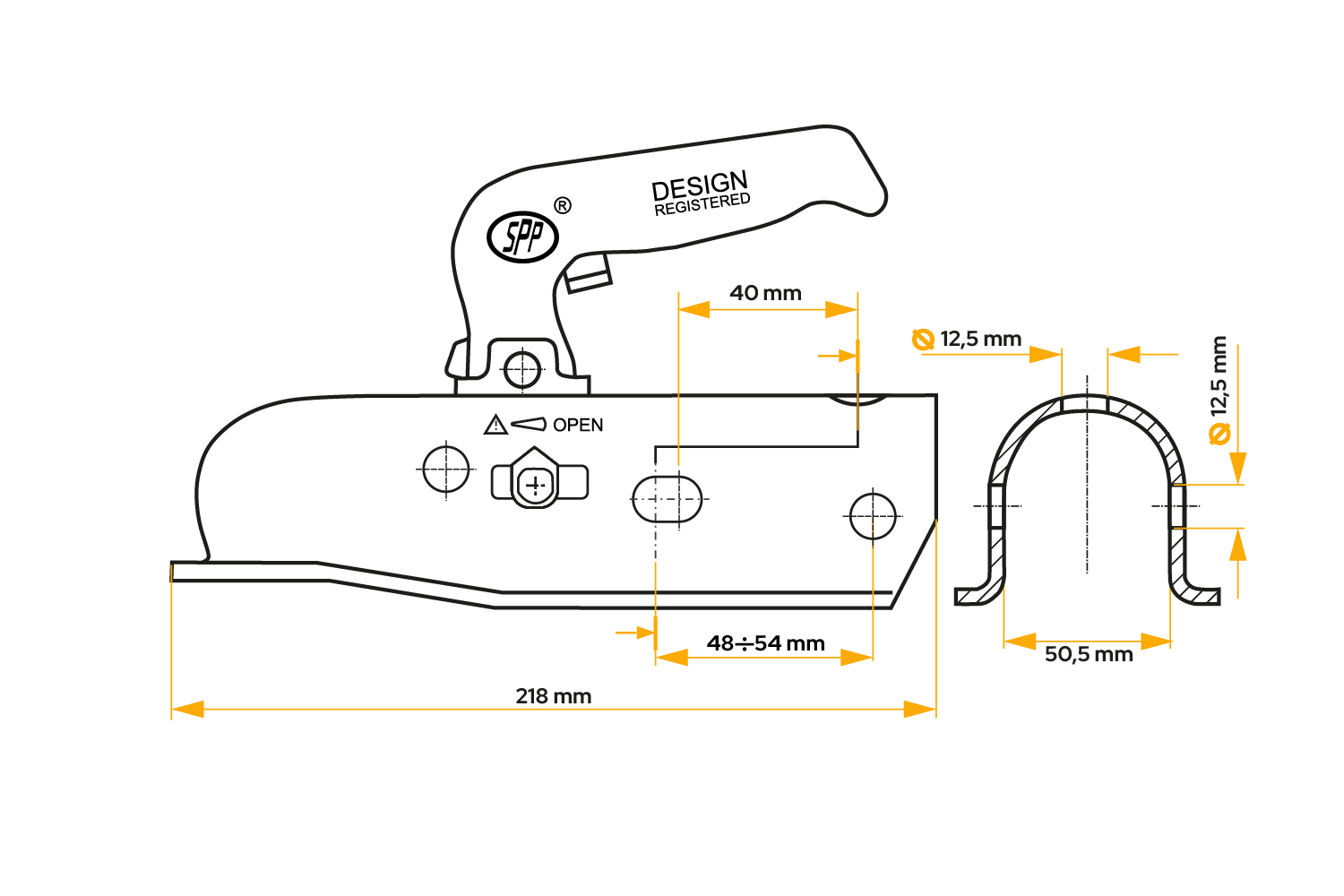 Attelage à boule STEELPRESS BC-3000.1D-00-00 pour remorque de 3 000 kg avec timon tubulaire de 35 à 50 mm