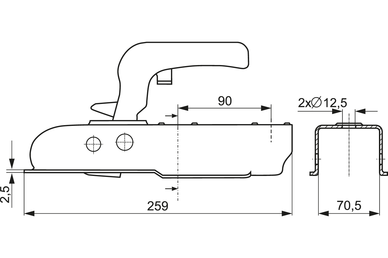 L'attelage à boule ZSK-0750J de STEELPRESS est conçu pour les remorques d'un poids total maximum de 750 kg. Conçu pour être monté sur un timon à profil carré de 70 mm, il assure une liaison stable et sûre avec le véhicule tracteur. Il se caractérise par une charge verticale admissible de 75 kg, qui assure une répartition optimale de la charge entre la remorque et le véhicule, garantissant stabilité et sécurité pendant la conduite. Sa conception permet un montage et un démontage faciles, ce qui augmente la commodité d'utilisation. Grâce à sa fabrication précise et à sa compatibilité avec une large gamme de remorques, cet attelage constitue une solution fiable pour les utilisateurs qui apprécient la qualité et la sécurité dans le transport de charges légères.