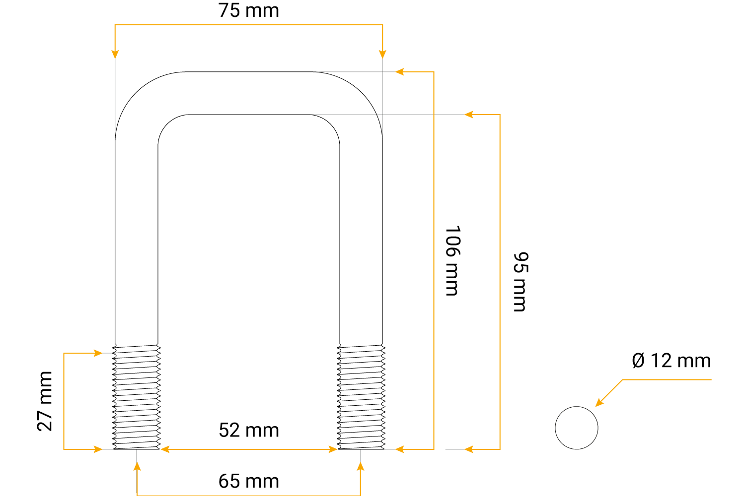 U-BOULON AVEC ÉCROUS ET RONDELLES M12 95/52/95