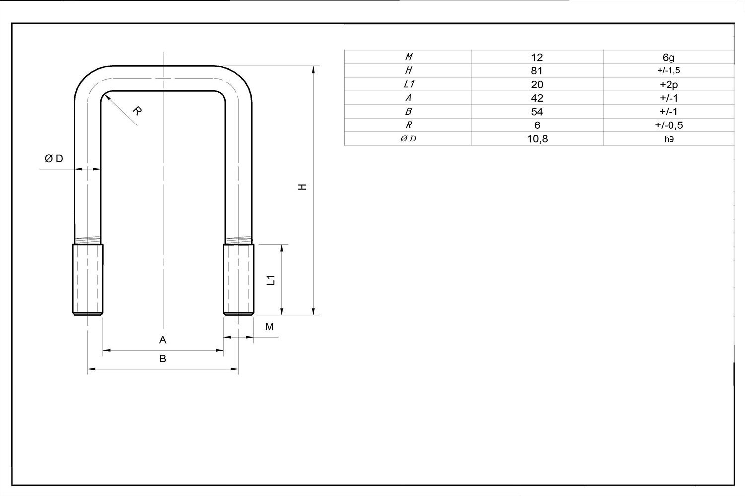 U-boulon avec écrous et rondelles M12 70/42/70