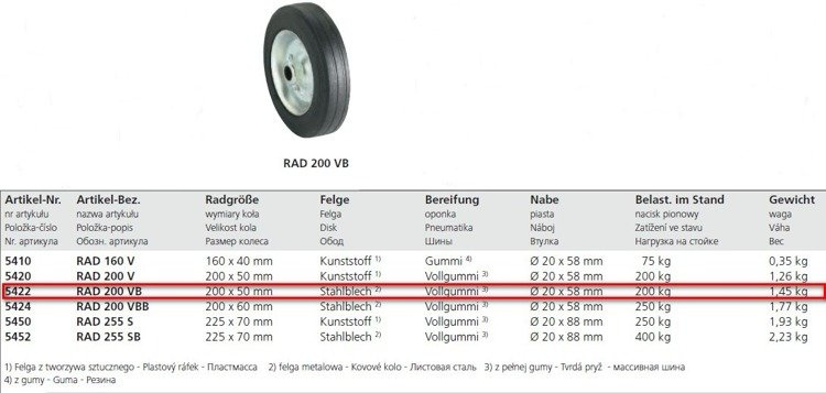 - Roue jockey - galet, fabriqué par Winterhoff constitue un élément constitutif du roue jockey. Enveloppe faite du caoutchouc de la plus haute qualité. Dimensions: 200x50 mm, largeur moyeu 58 mm, diamètre d'orifice 20mm.