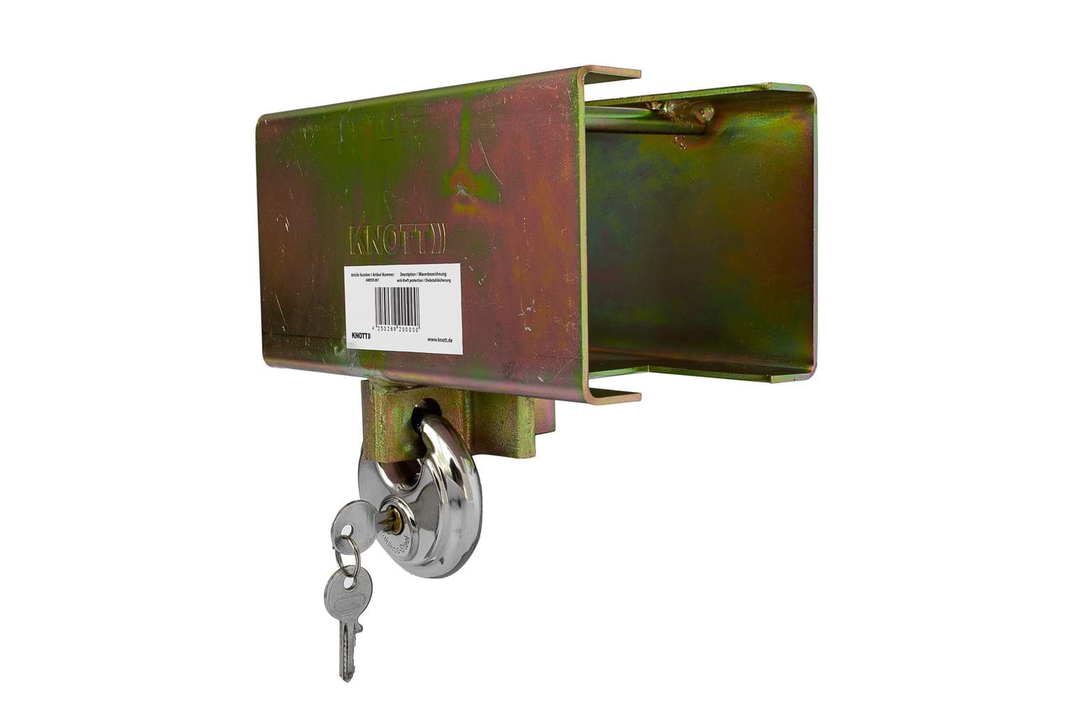 - L'antivol attelage KNOTT convient à la plupart des têtes d'attelage de remorques legères. Il peut être attaché à la remorque accrochée mais aussi à la remorque libre. L'ensemble cadenas et deux clés incluses.