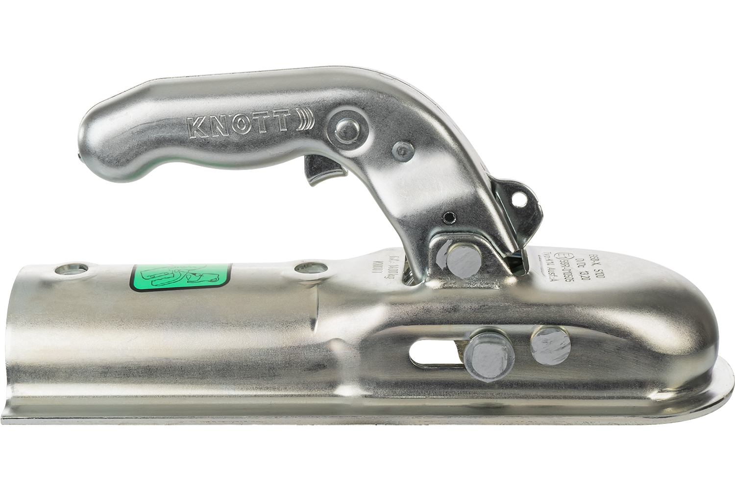 • Attelage à boule KNOTT K14-A conçu pour les remorques pesant jusqu'à 1400 kg. Monté sur un timon à profil tubulaire de 50 mm, il permet d'atteler en toute sécurité la remorque au véhicule tracteur.