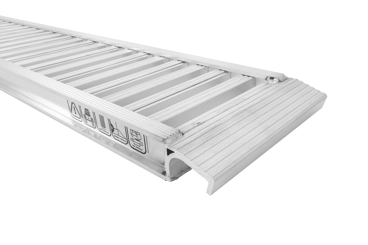 - Rampe de chargement aluminium de 250 cm. Destinée pour les remorques et semi-remorques. Avec rebords et rainures.