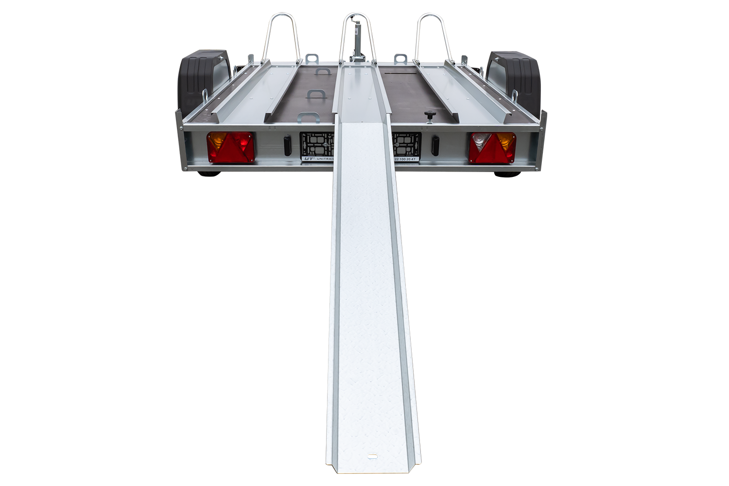 Remorque moto basculante pour le transport de 3 motos. Notre remorque UNITRAILER MOTO 3 est un modèle très pratique et idéal pour le transport de trois motos. Nous avons développé une remorque qui vous permet de charger et de transporter facilement et rapidement jusqu’à trois motos. Grâce à la méthode d’emballage spéciale, nous pouvons envoyer le modèle UNITRAILER MOTO 3 directement chez vous par courrier. L’expédition et la livraison ne prennent que quatre à cinq jours ouvrables !