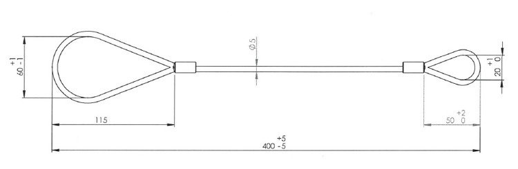 - Cable de rupture remorque en acier. Longueur 400 mm, diamètre 5 mm. Pour des remorques non freinées.