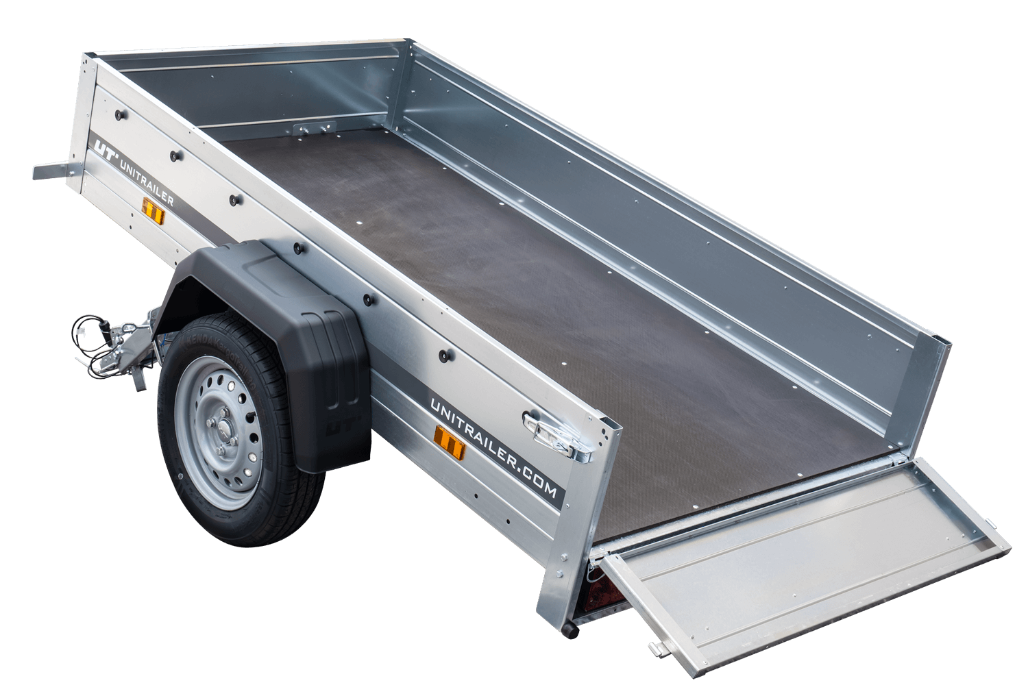 Remorque de loisirs avec la surface de transport de 200x106 cm. Garden Trailer 200 KIPP est l'un des modèles les plus populaires d'UNITRAILER qui dispose d'une suspension basée sur l'essieu simple non-freiné AL-KO ou KNOTT. Timon pliable en V (rabattable) et ridelle arrière ouvrante. Remorque en tôle d'acier galvanisé avec 2 ans de garantie. Roues 155/70 R13 avec jantes d'acier, qui amortissent des routes inégales et permettent une conduite confortable. Garde-boues très durables faits en matières plastiques résistantes à la corrosion.