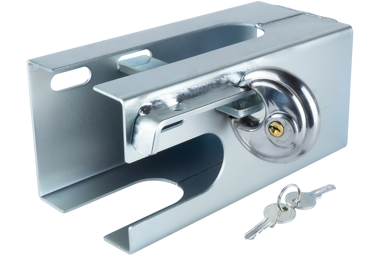 Antivol remorque universel qui s’adapte à la plupart des têtes d'attelage de remorque.