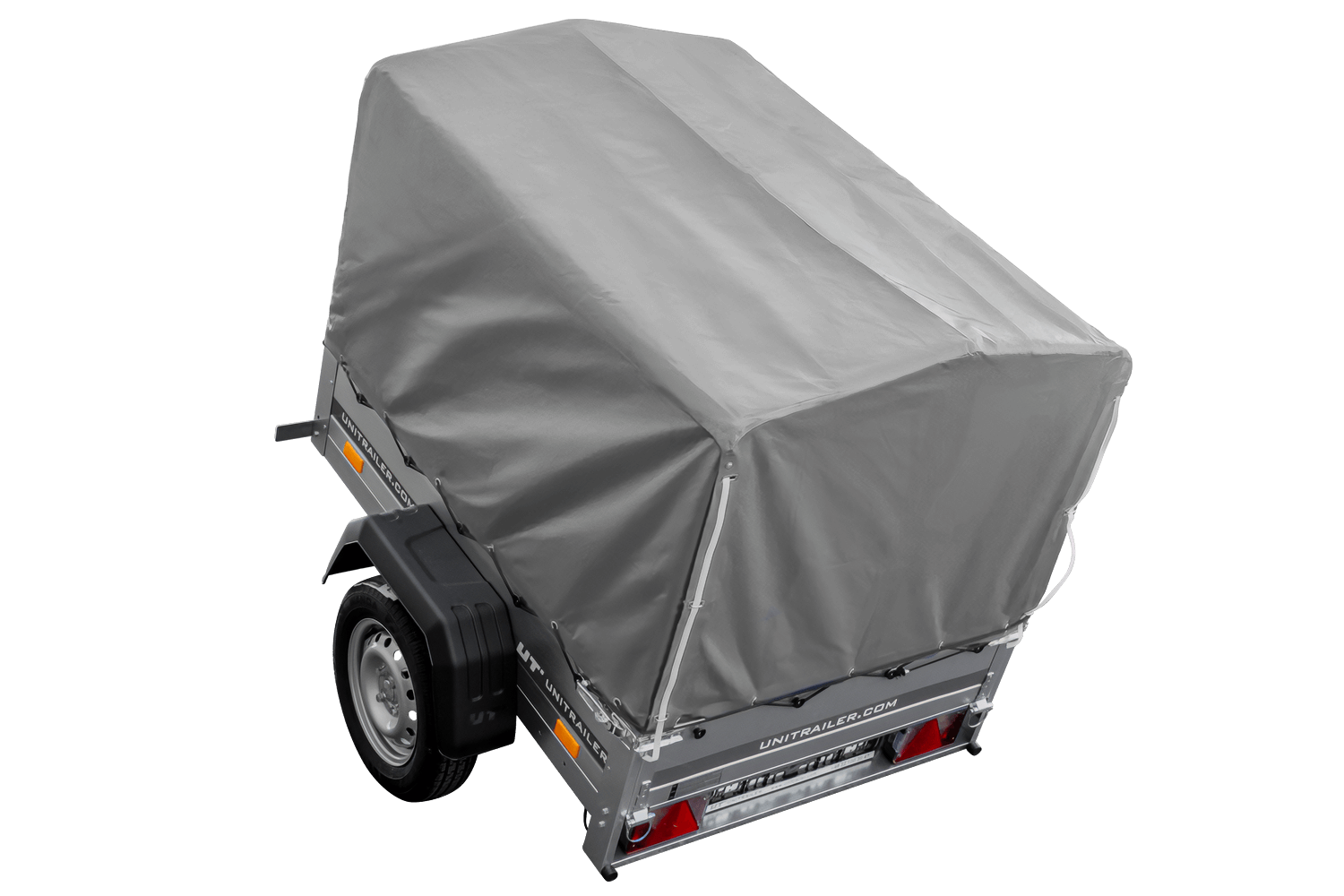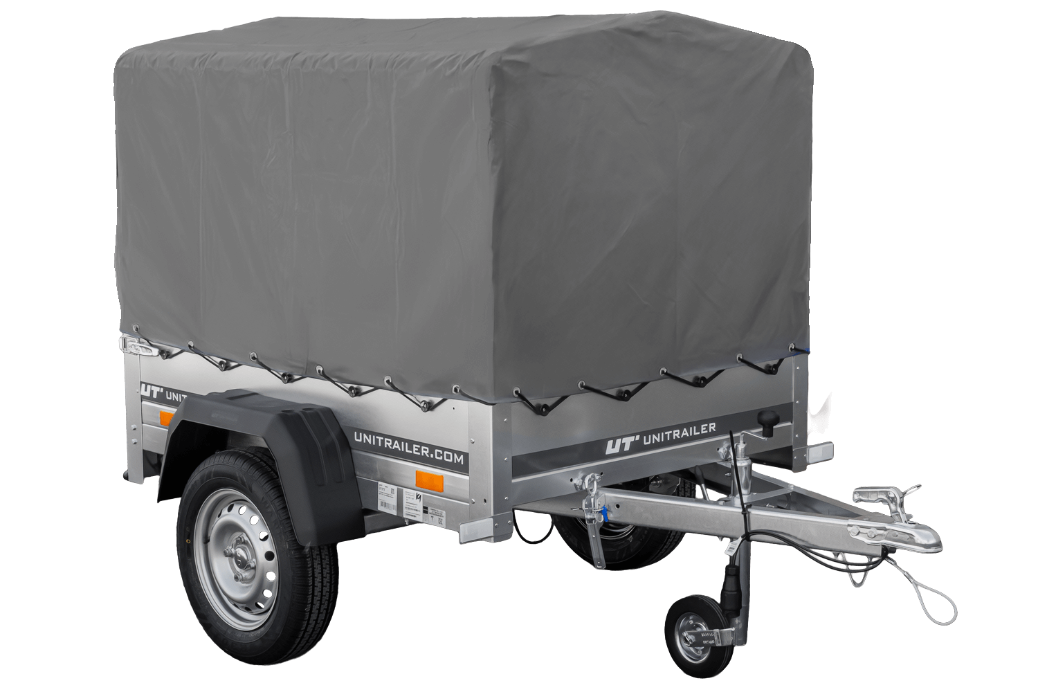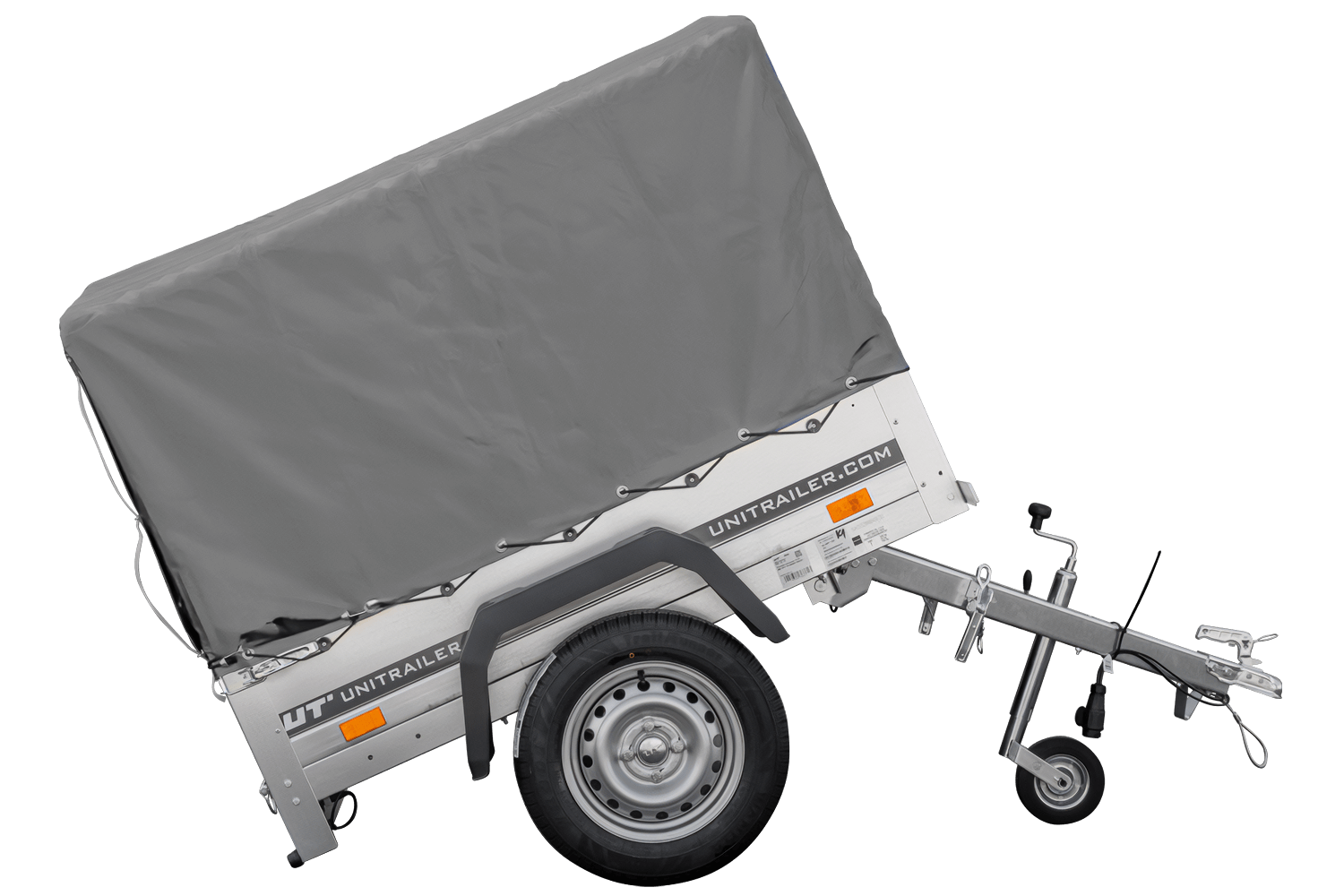 Remorque bachée avec arceau, caisse basculante de la marque UNITRAILER, modèle GARDEN TRAILER 150 KIPP. C'est une remorque petite, idéale pour usage quotidien. La bâche avec armature la rendent très pratique pour le transport des marchandises, qui peuvent être facilement chargés grâce au timon pliable et ridelle arrière ouvrante. Une remorque très solide anti-corrosion, en acier galvanisé. Elle est idéale pour votre maison car elle peut être placée sur la ridelle arrière, ce qui permet de son stockage vertical dans votre maison ou à côté du garage.