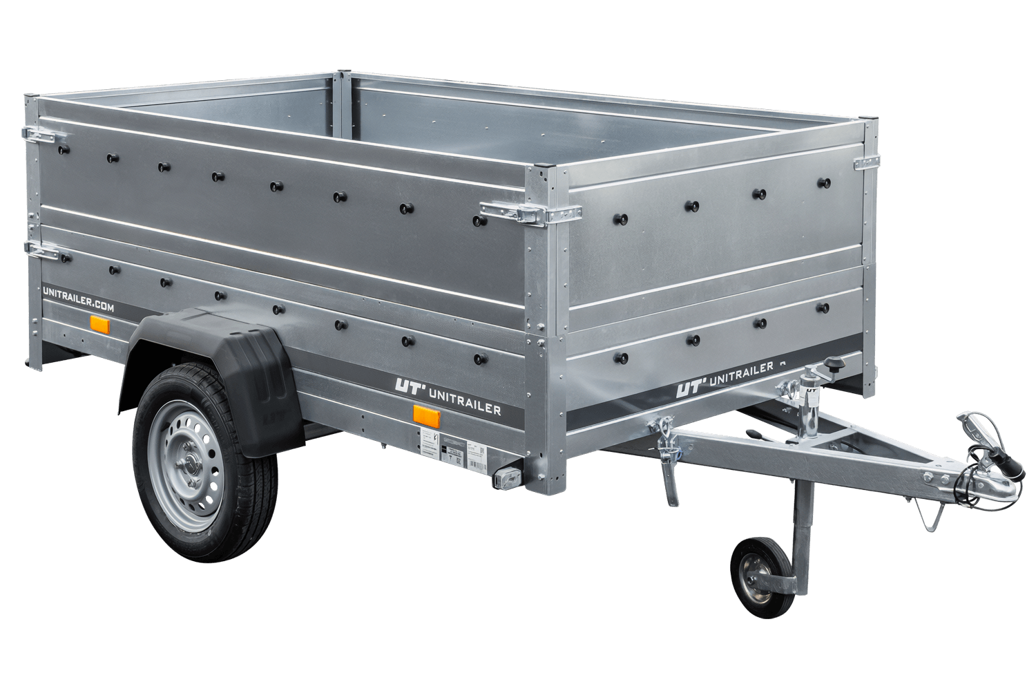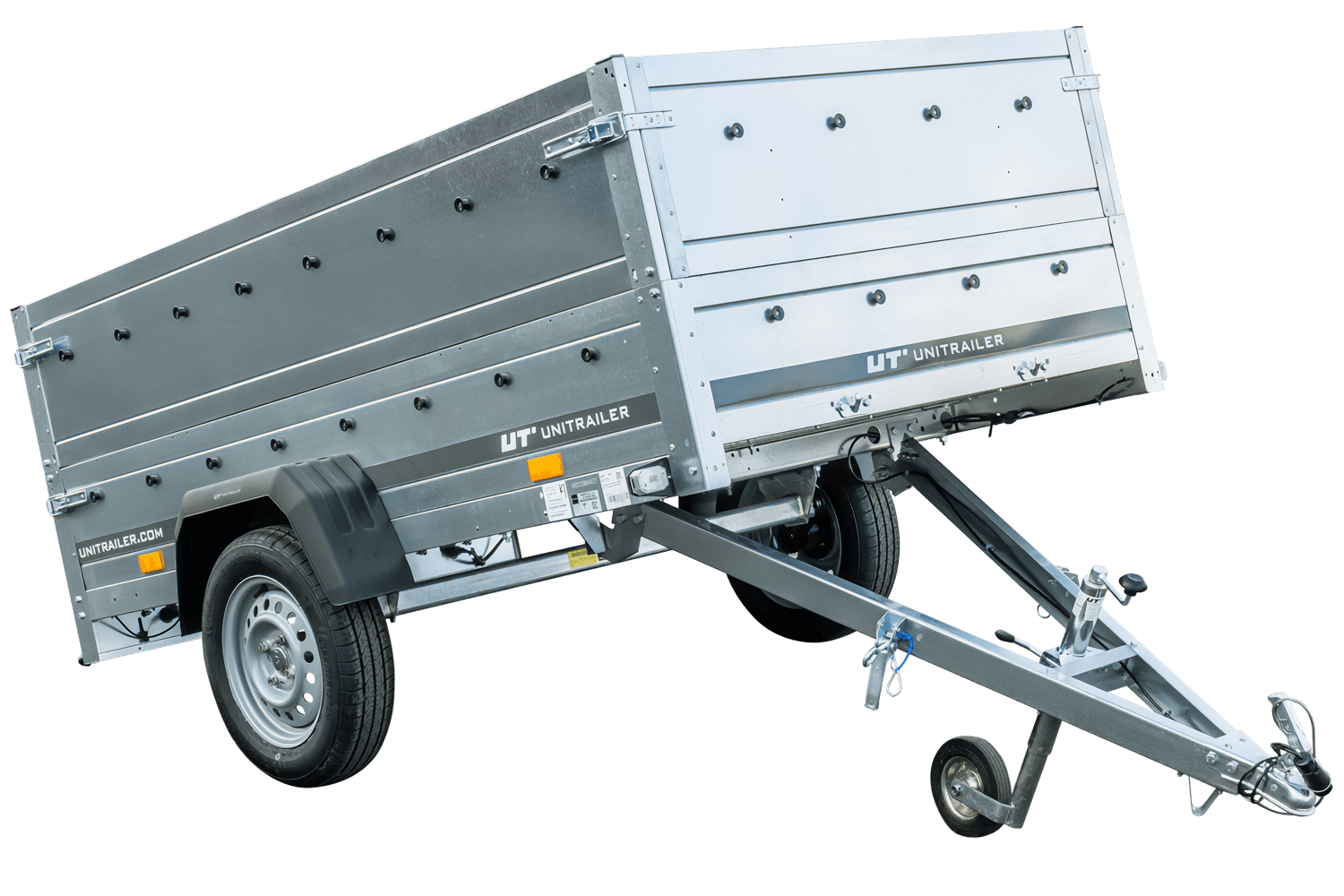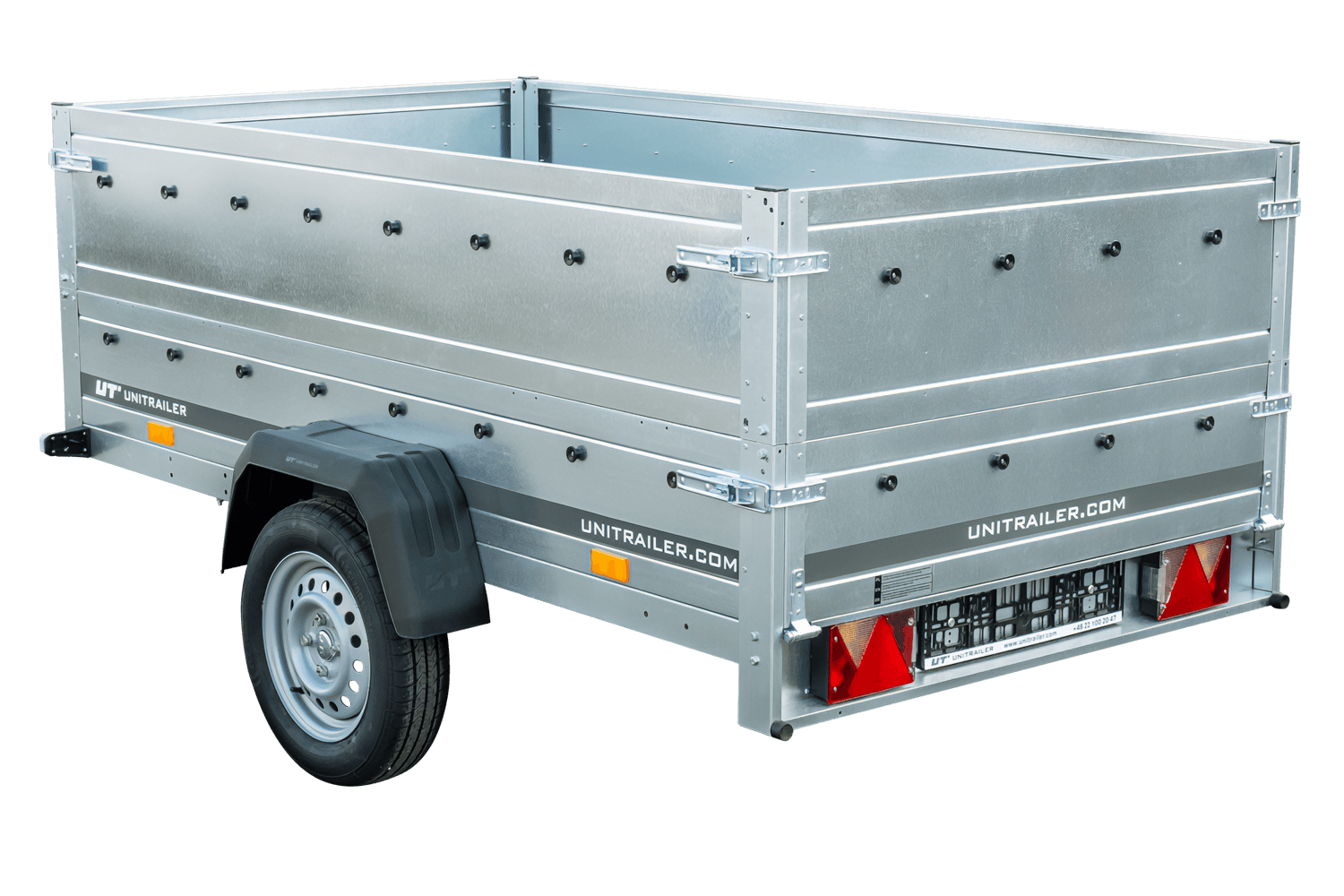 Remorque auto avec rehausses de ridelles UNITRAILER Garden Trailer 230 KIPP est le dernier produit de notre offre. Maintenant, c'est la plus grande remorque dans notre magasin avec PTAC jusqu'à 750 kg. Elle est équipée de la ridelle arrière ouvrable, ce qui rend facile le chargement et le déchargement de la cargaison. Grâce au timon pliable, elle peut être placée verticalement sur le panneau arrière. Nous faisons toutes les formalités liées à l'achat pour vous. La remorque est livrée à votre domicile avec tous les documents nécessaires pour l'immatriculer.