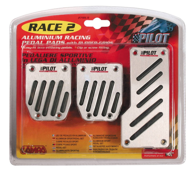 - Jeu de pédales en aluminium RACE2 PILOT avec caoutchouc antidérapant. Ce sont des plaques de protection pour les trois pédales standards.