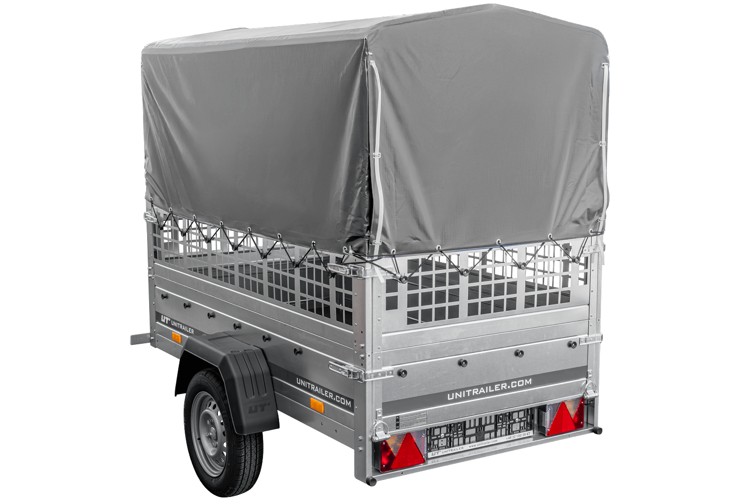 Mis à part le fait que vous gagnez une surface de transport exceptionnellement grande, nous offrons aussi des rehausses de ridelles grillagées avec bâche haute dans l'ensemble qui protégeront votre cargaison contre toutes les influences atmosphériques. La roue jockey (aussi incluse dans l'ensemble) permet de mieux manœuvrer la remorque détachée du crochet. Le timon pliable vous donne la possibilité de basculer la remorque de telle manière que vous soyez capable de charger et décharger votre remorque beaucoup plus rapide que d'habitude. Cette solution n'est disponible que dans les remorques plus avancées, qui coûtent souvent beaucoup plus cher que notre remorque en question. Elle sera, avant tout, parfaite pour des réparations, transport des meubles, du bois, des matériaux de construction, des outils et toutes les autres choses que vous aviez transportées dans votre voiture jusqu'à présent. En utilisant les rehausses de ridelles supplémentaires et une bâche haute, vous obtenez jusqu'à 150 cm de hauteur de la surface de transport. Vous pouvez également monter des supports latéraux, dispositifs de fixation sur le plancher, un filet de fixation de charge ou acheter une roue de secours ou des cales de roue. Vous adapterez votre remorque à vos besoins de manière très facile.