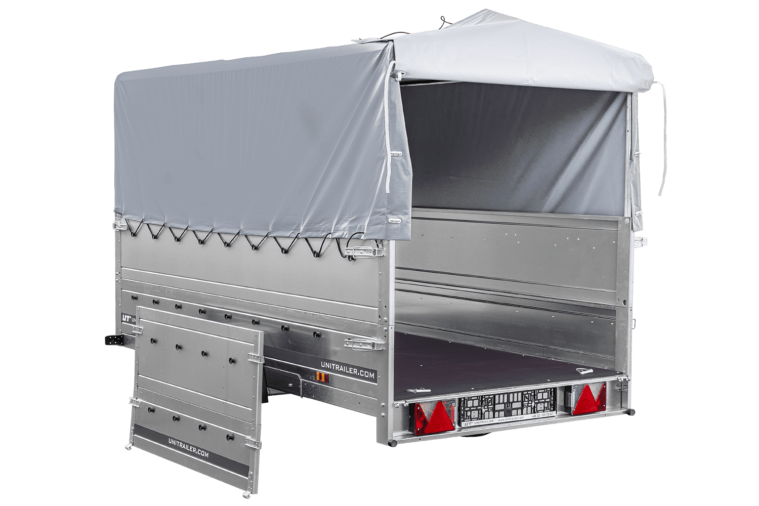 - Remorque basculante avec une grande surface de transport Garden Trailer 264 KIPP. L'ensemble d'équipement se compose de : roue de support, côtés BIS, châssis h-800 et bâche grise. Une remorque à benne basculante avec un timon inclinable. Vous comm