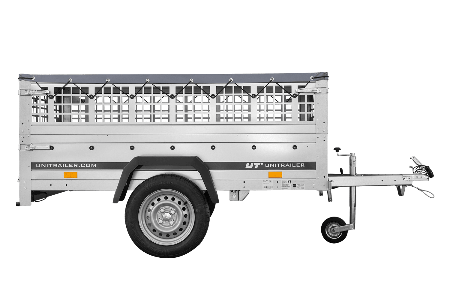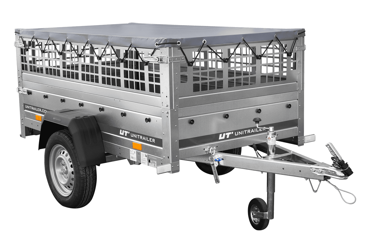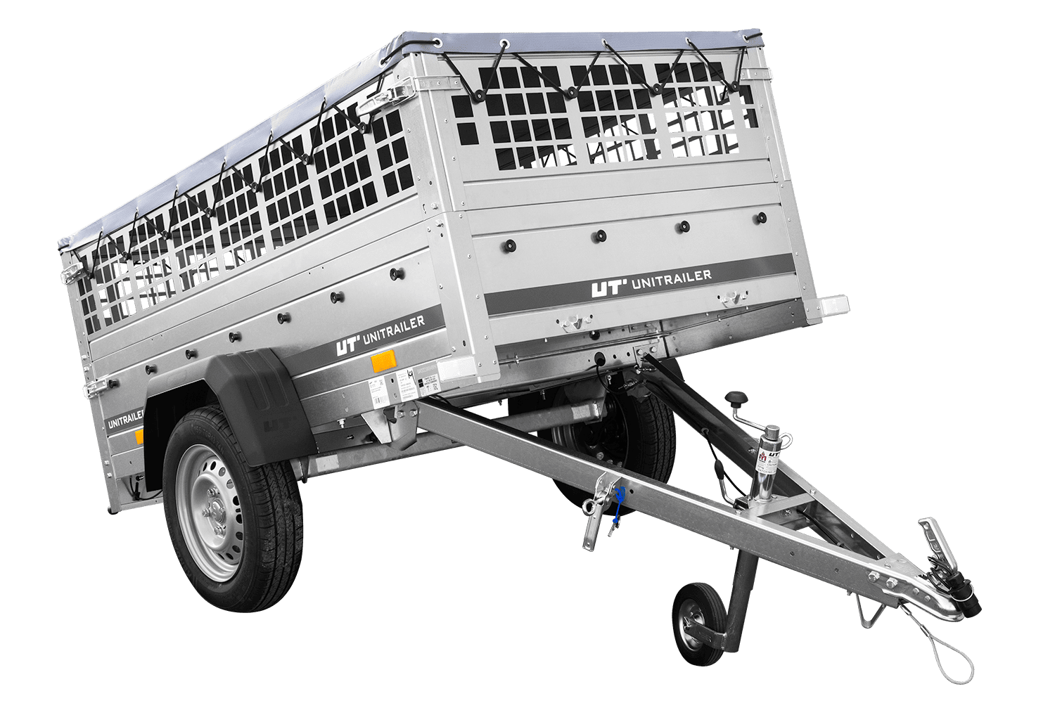 Remorque grillagée 200x106 avec bâche plate grise, ridelles grillagées et roue jockey - Garden Trailer 200 KIPP