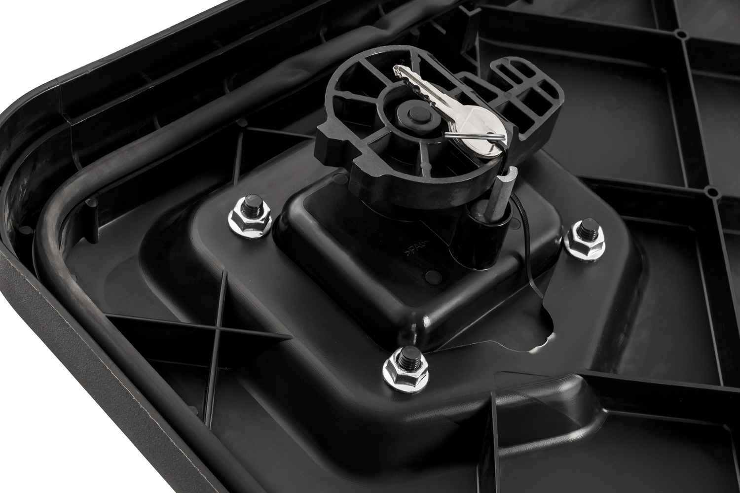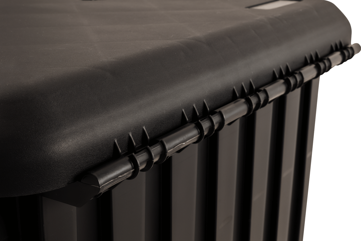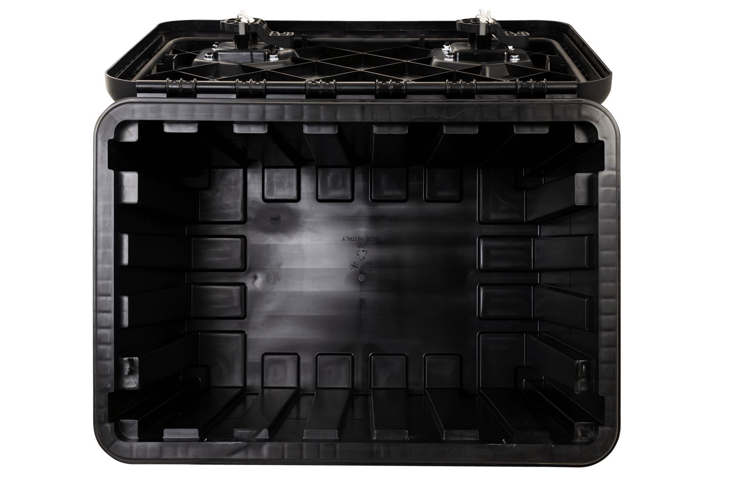 La boîte est fabriquée en polypropylène et en nylon de haute qualité, renforcés par des nervures, ce qui augmente sa durabilité et sa résistance aux dommages mécaniques. Le matériau offre une protection exceptionnelle contre le feu, l'eau, la poussière, le carburant, les rayons UV et les températures extrêmes, ce qui en fait une solution idéale pour une utilisation intensive dans des conditions difficiles. Le couvercle de la boîte est équipé d'un joint en caoutchouc qui assure une étanchéité totale, empêchant l'eau et la poussière de pénétrer à l'intérieur. Cette conception protège efficacement les outils et équipements stockés contre les agressions extérieures néfastes, ce qui est particulièrement important en cas d'utilisation intensive sur des chantiers ou dans des conditions météorologiques difficiles.