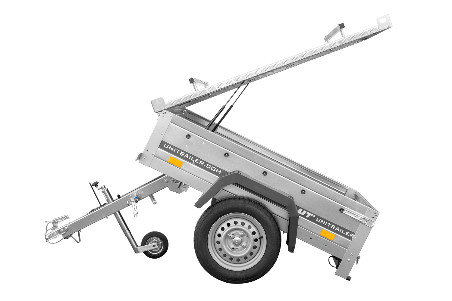 UNITRAILER GARDEN TRAILER 150 KIPP avec un timon basculant et capot en aluminium - une protection unique pour votre surface de chargement. Remorque multifonctionnelle pour toutes vos tâches.