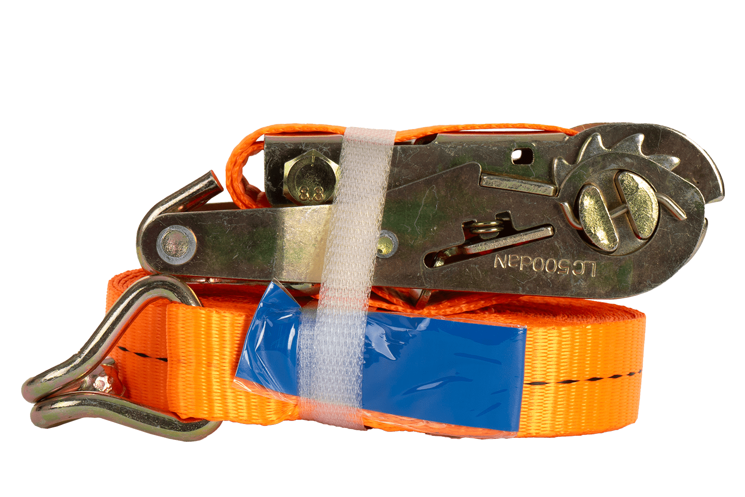 La force de tension est de 165 daN, ce qui signifie que la sangle exerce une pression sur la charge équivalente à 165 kg , l'empêchant ainsi de se déplacer pendant le transport. Il s'agit d'un paramètre clé d'une sangle de transport, déterminant la force de serrage pouvant être obtenue avec une tension standard à l'aide d'un tendeur (à cliquet). Ce paramètre est particulièrement important lors de la planification de l'arrimage de la charge, car il renseigne sur la force réelle de maintien de la charge en position avec une tension standard, ce qui renforce la sécurité de la charge pendant le transport.