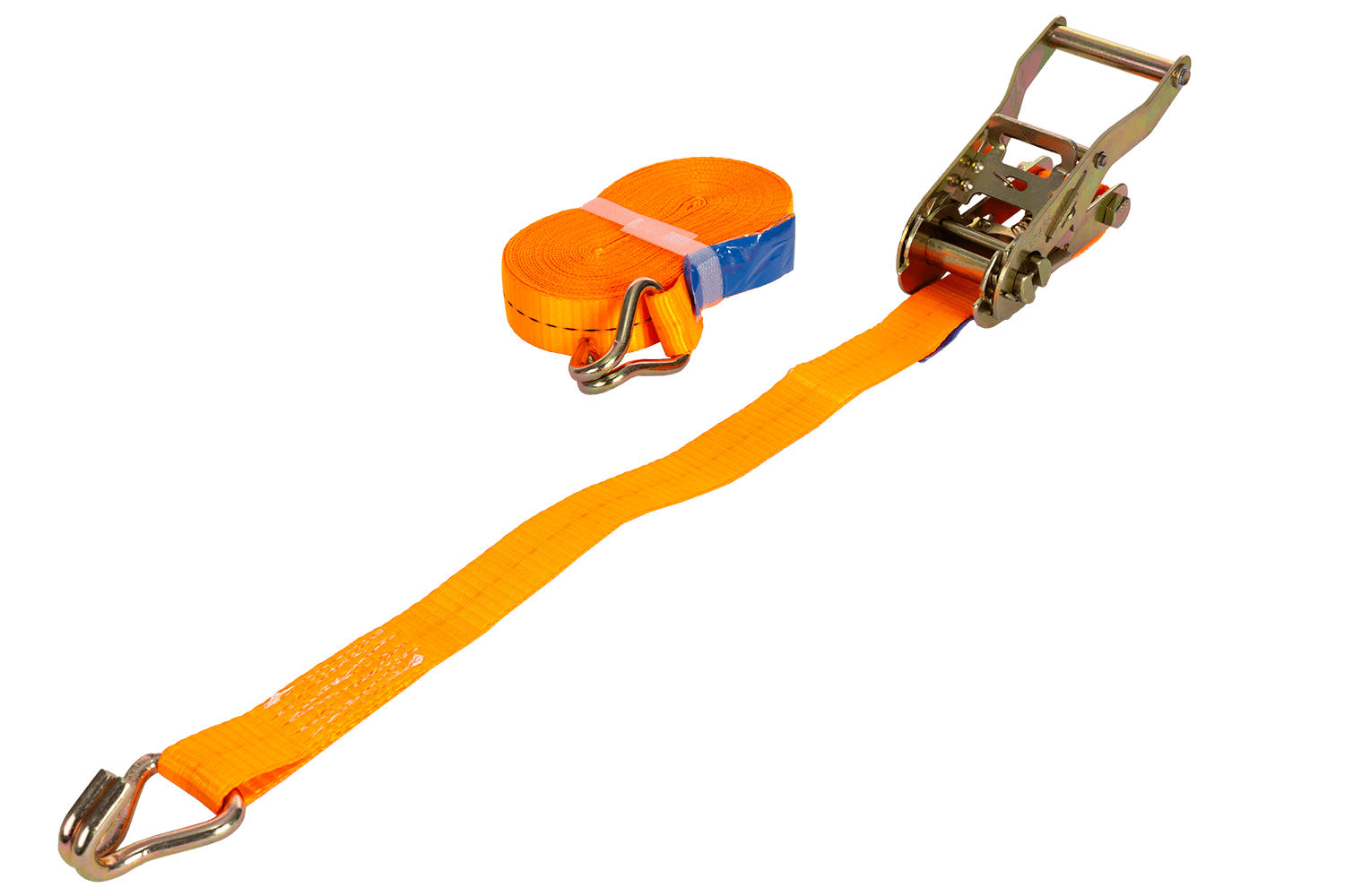 La sangle à cliquet orange UNITRAILER se compose de deux parties : une partie courte avec cliquet et crochet, et une partie longue avec sangle et crochet. Sa longueur totale, sangle et boucle comprises, est de 8 mètres , ce qui est suffisant pour de nombreuses applications de transport. D'une largeur de 25 mm, elle offre une surface de serrage optimale. Sa résistance à la traction de 1 tonne (1 000 daN) permet un arrimage sûr et un arrimage stable du chargement pendant le transport.