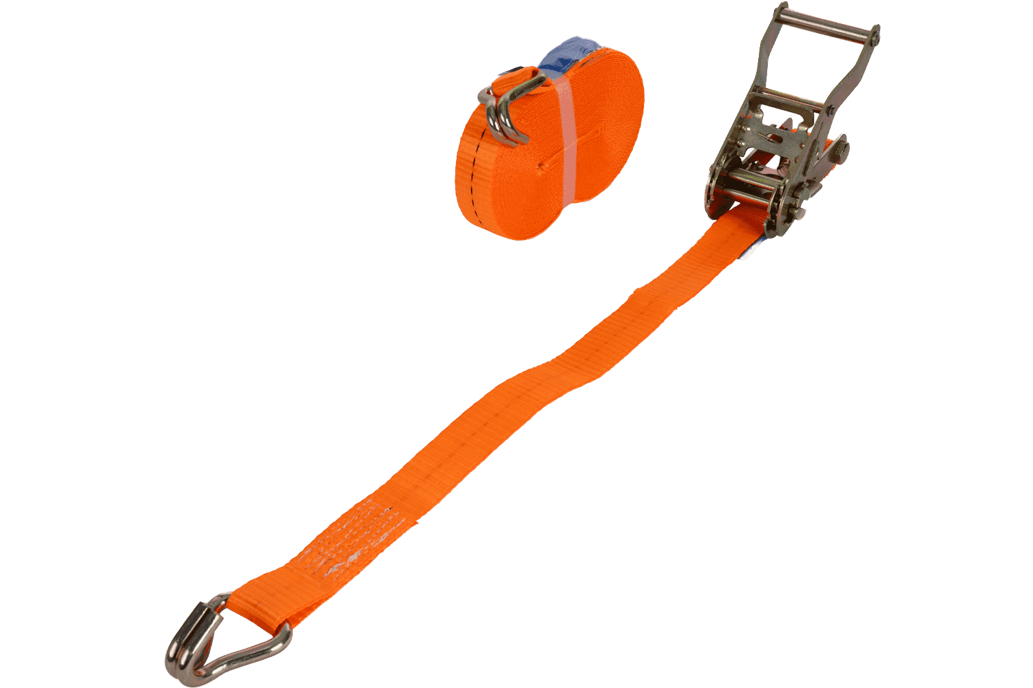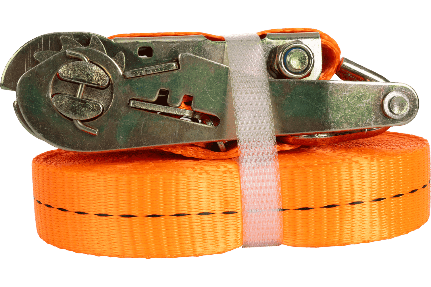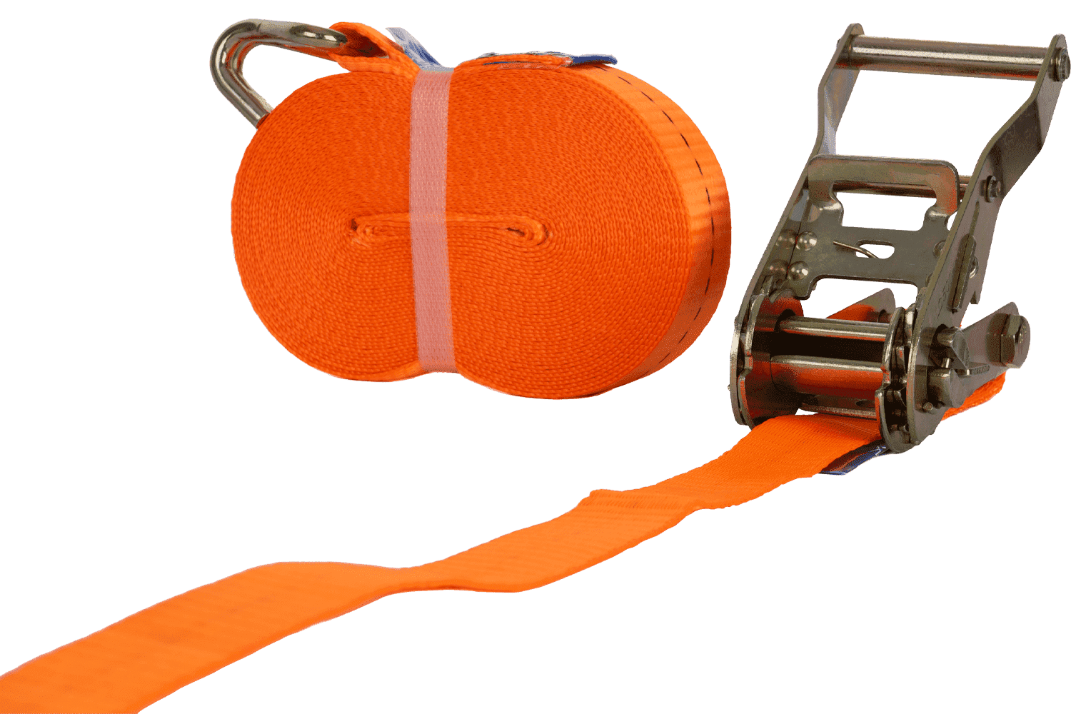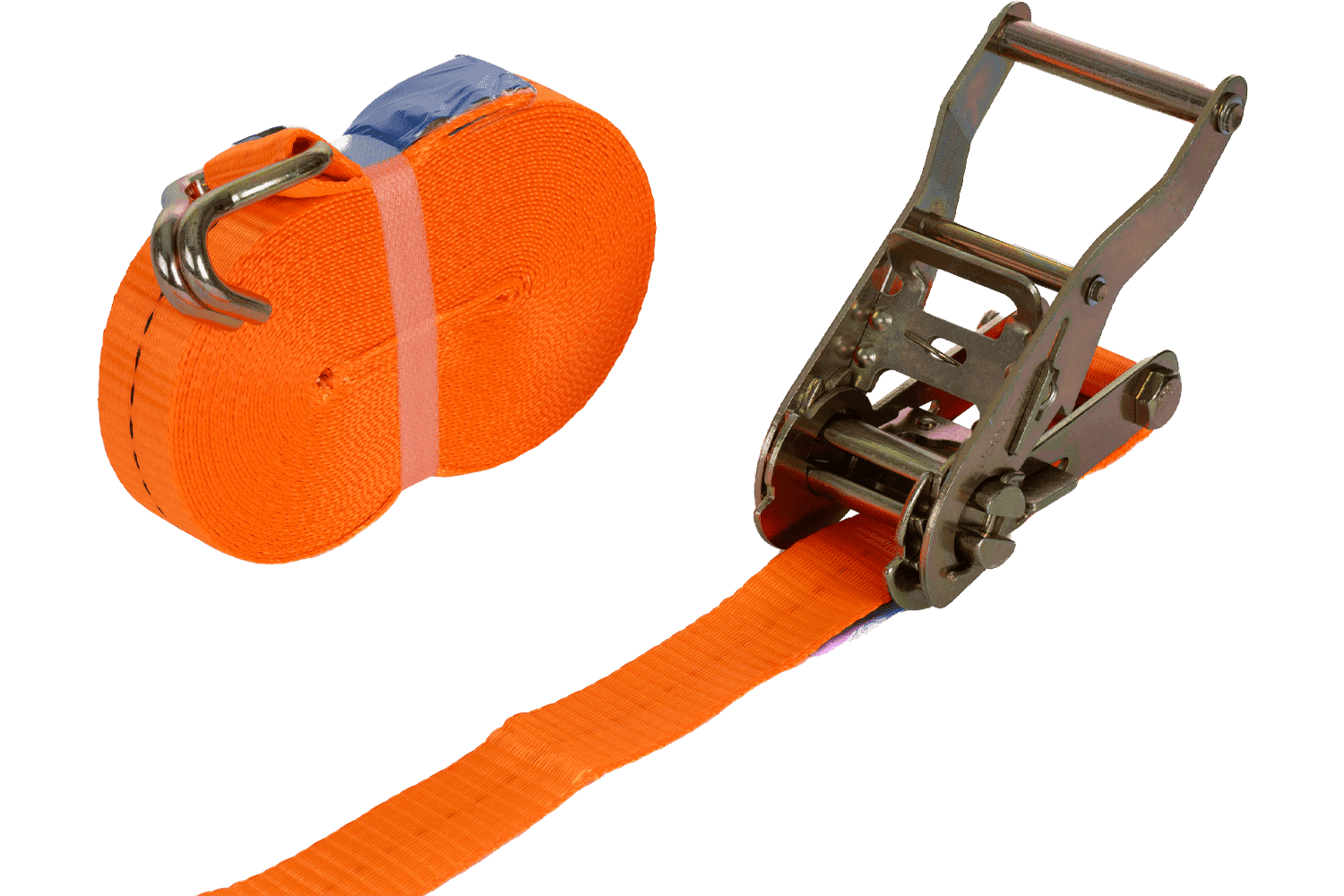La sangle à cliquet orange UNITRAILER se compose de deux parties : une partie courte avec cliquet et crochet, et une partie longue avec sangle et crochet. Sa longueur totale, sangle et boucle comprises, est de 10 mètres , ce qui est suffisant pour de nombreuses applications de transport. D'une largeur de 25 mm, elle offre une surface de serrage optimale. Sa résistance à la traction de 1 tonne (1 000 daN) permet un arrimage sûr et un arrimage stable du chargement pendant le transport.