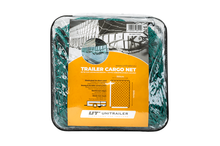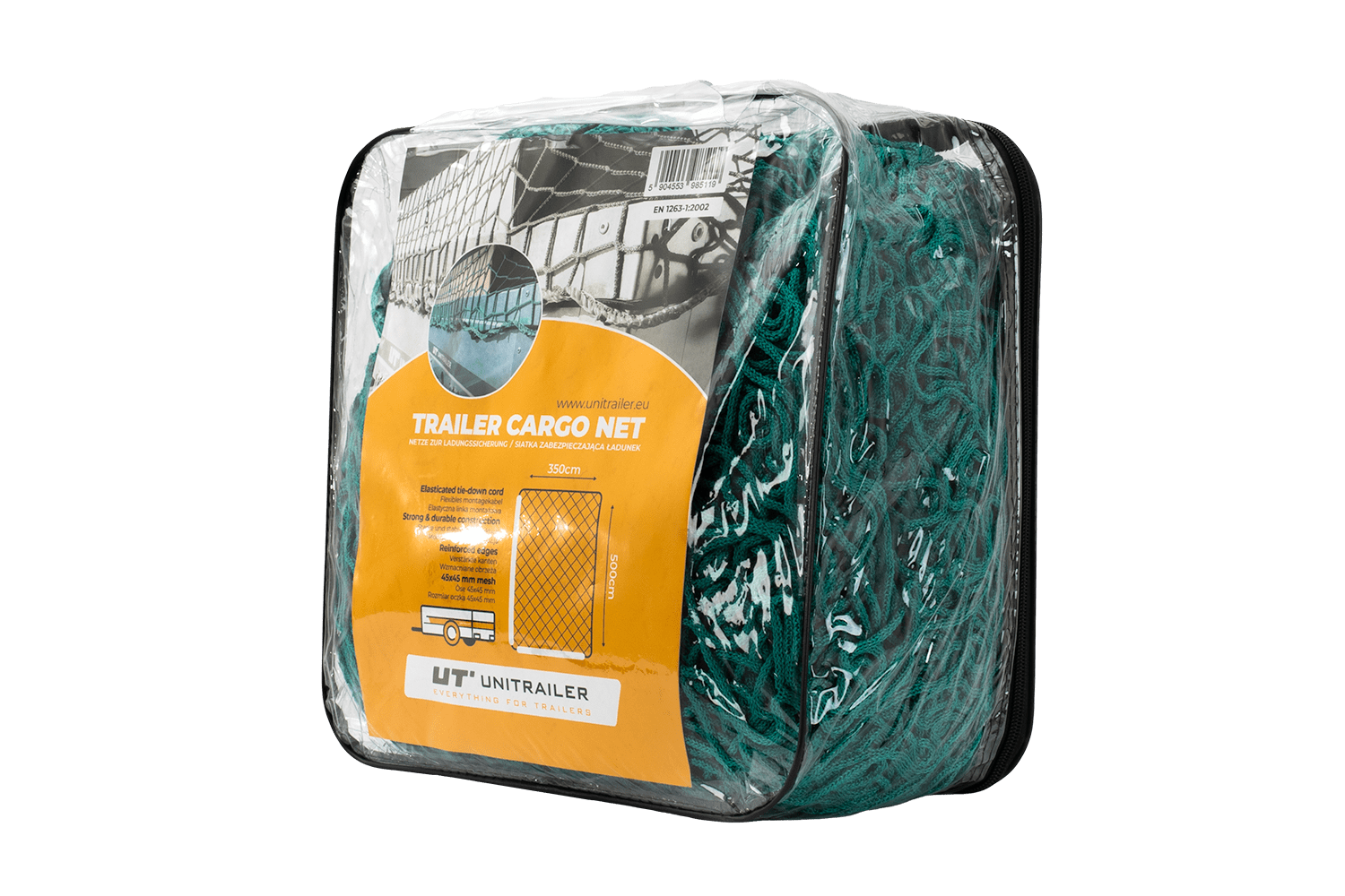 - Le filet de transport aux dimensions de 350 x 500 cm est un dispositif d'arrimage durable du chargement sur la remorque. Fabriqué en fibre solide, il possède des bords renforcés et un cordon en caoutchouc flexible pour une installation facile.