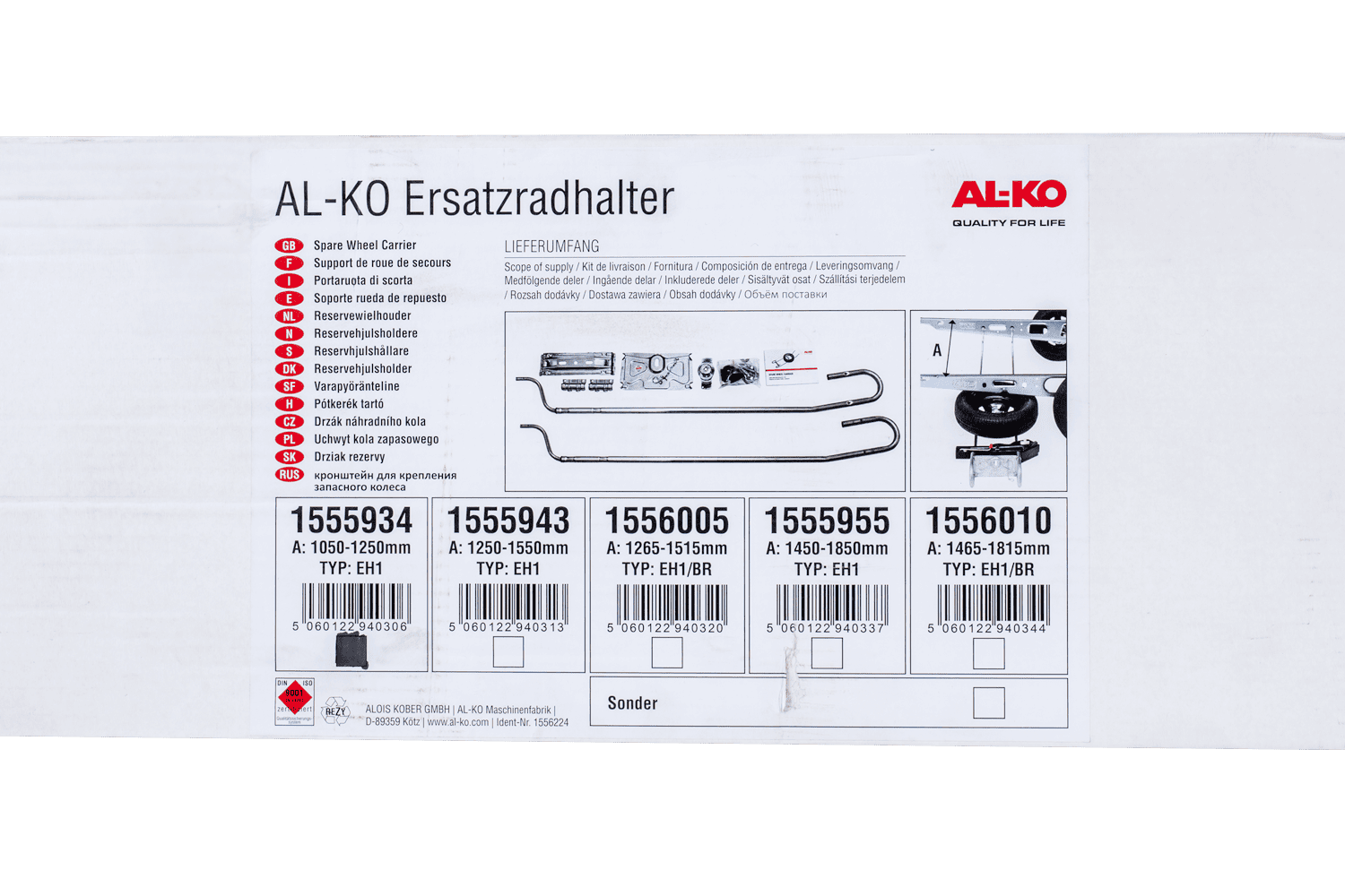 - Support de roue de secours AL-KO pour caravanes d'une largeur de châssis de 1050 mm à 1250 mm. Le support est monté sous la remorque, ce qui permet de gagner de la place à l'intérieur de la caravane et dans le compartiment de rangement avant.