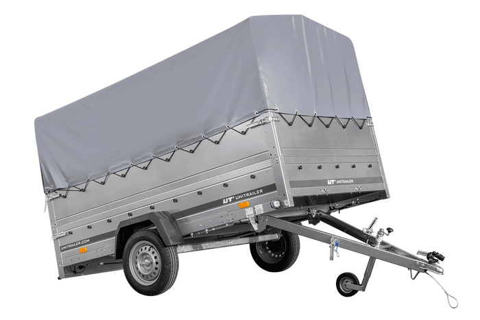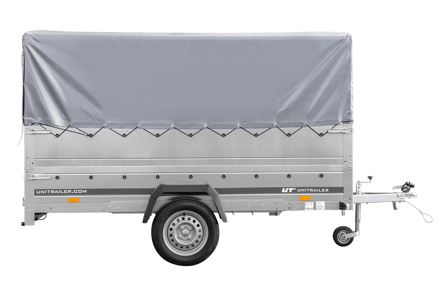 Remorque à essieu simple 264x150 UNITRAILER GARDEN 265 KIPP avec ridelles supplémentaires, arceau H-800 et bâche grise
