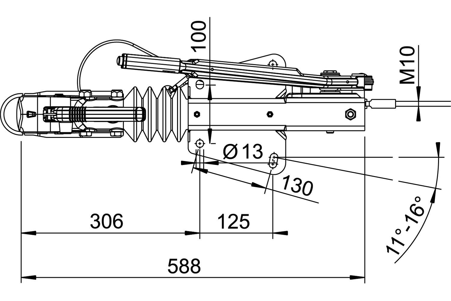 Le dispositif de dépassement, à inertie90S/3 d'AL-KO est une solution polyvalente conçue pour les remorques et remorques freinées avec timon en V, d'un poids total de 700 kg à 1000 kg. Il se caractérise par une charge verticale maximale autorisée de 75 kg, qui assure une répartition optimale de la charge entre la remorque et le véhicule tracteur. Le dispositif 90S/3 est équipé d'une boule d'attelage AK 161, assurant une liaison stable avec le véhicule, et est compatible avec le mécanisme de freinage AL-KO 1636G/1637/2051. La conception du dispositif a été conçue pour être montée uniquement sur la partie supérieure du timon, ce qui garantit un fonctionnement optimal du système de freinage et permet un accès facile lors de la maintenance.