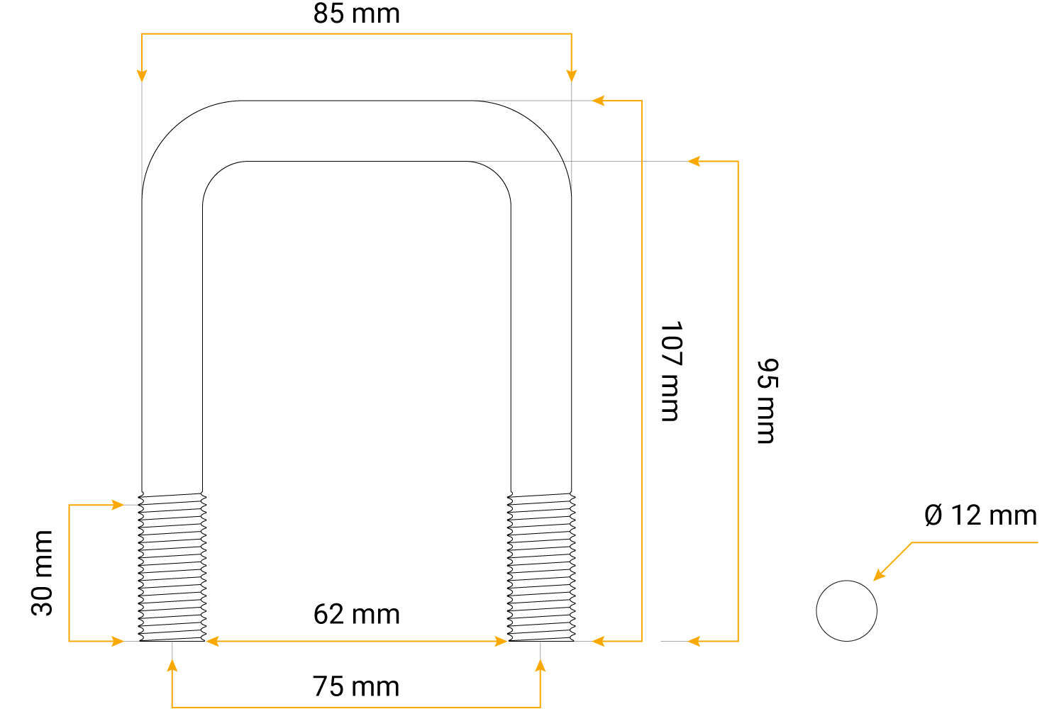 U-BOULON AVEC ÉCROUS ET RONDELLES M12 95/62/95