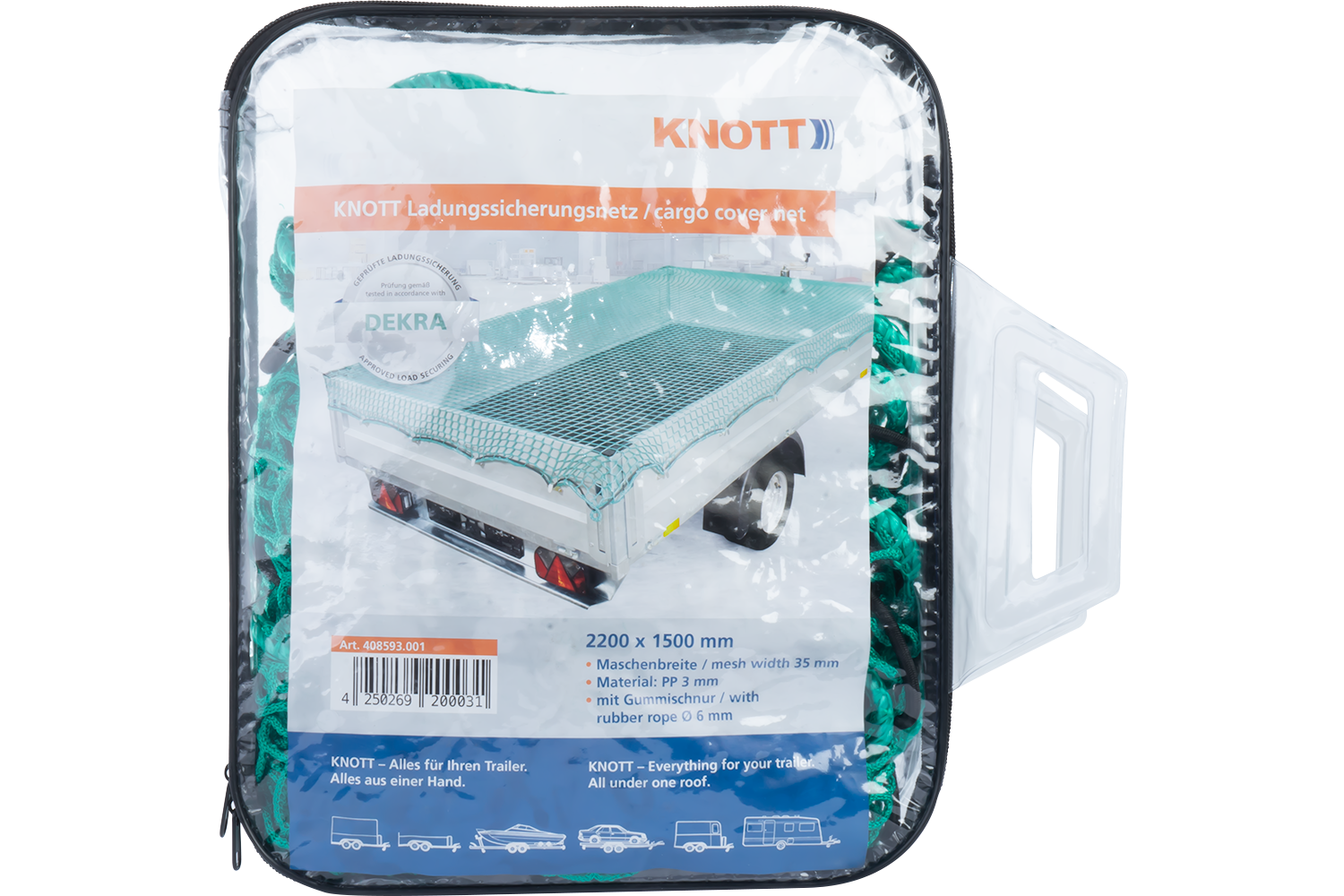 Filet KNOTT pour remorque avec bordure élastique - 1500x2200