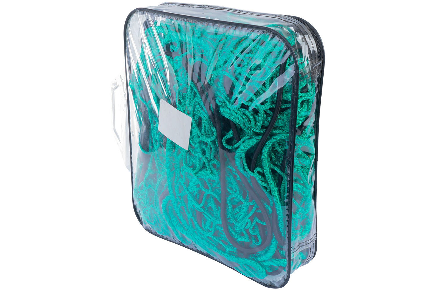Filet du fibre avec les bordures renforcées. Sur les bordures il y a une corde élastique qui facilite l'installation du filet sur la remorque.
