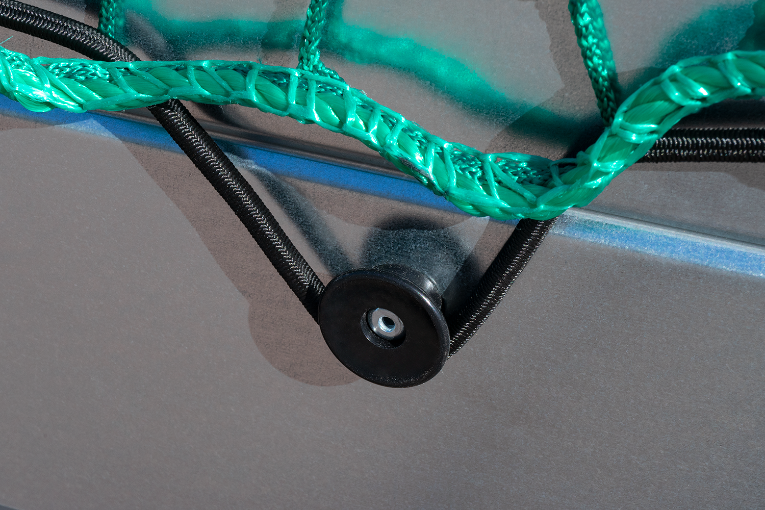 Filet du fibre avec les bordures renforcées. Sur les bordures il y a une corde élastique qui facilite l'installation du filet sur la remorque.