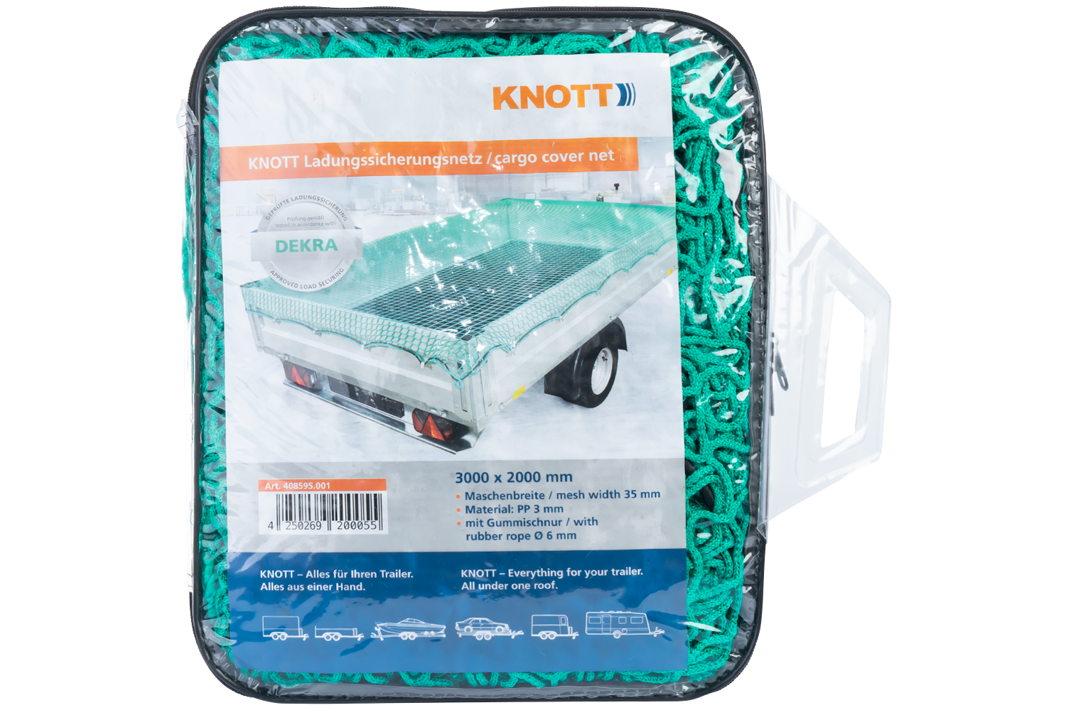 - Filet pour remorques avec bord élastique, fabriqué par KNOTT. Assure le transport en sécurité. Dimensions 2000x3500