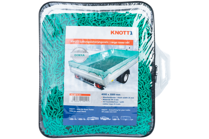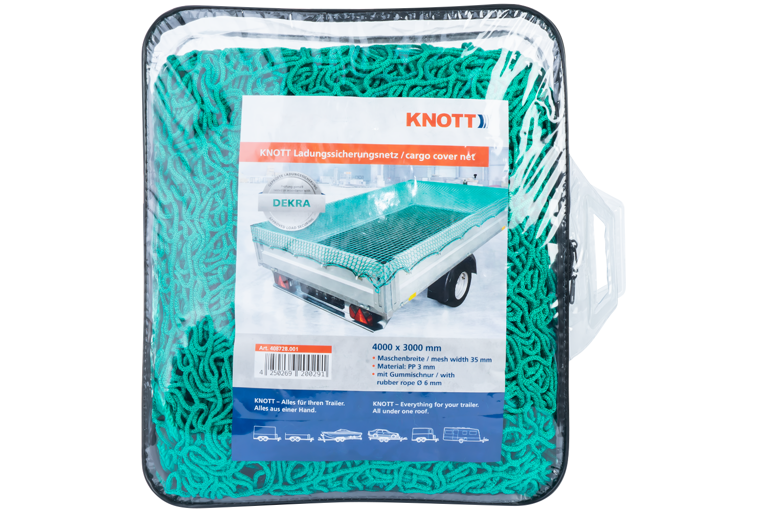 - Filet pour remorques avec bord élastique, fabriqué par KNOTT. Assure le transport en sécurité. Dimensions 3000x4000