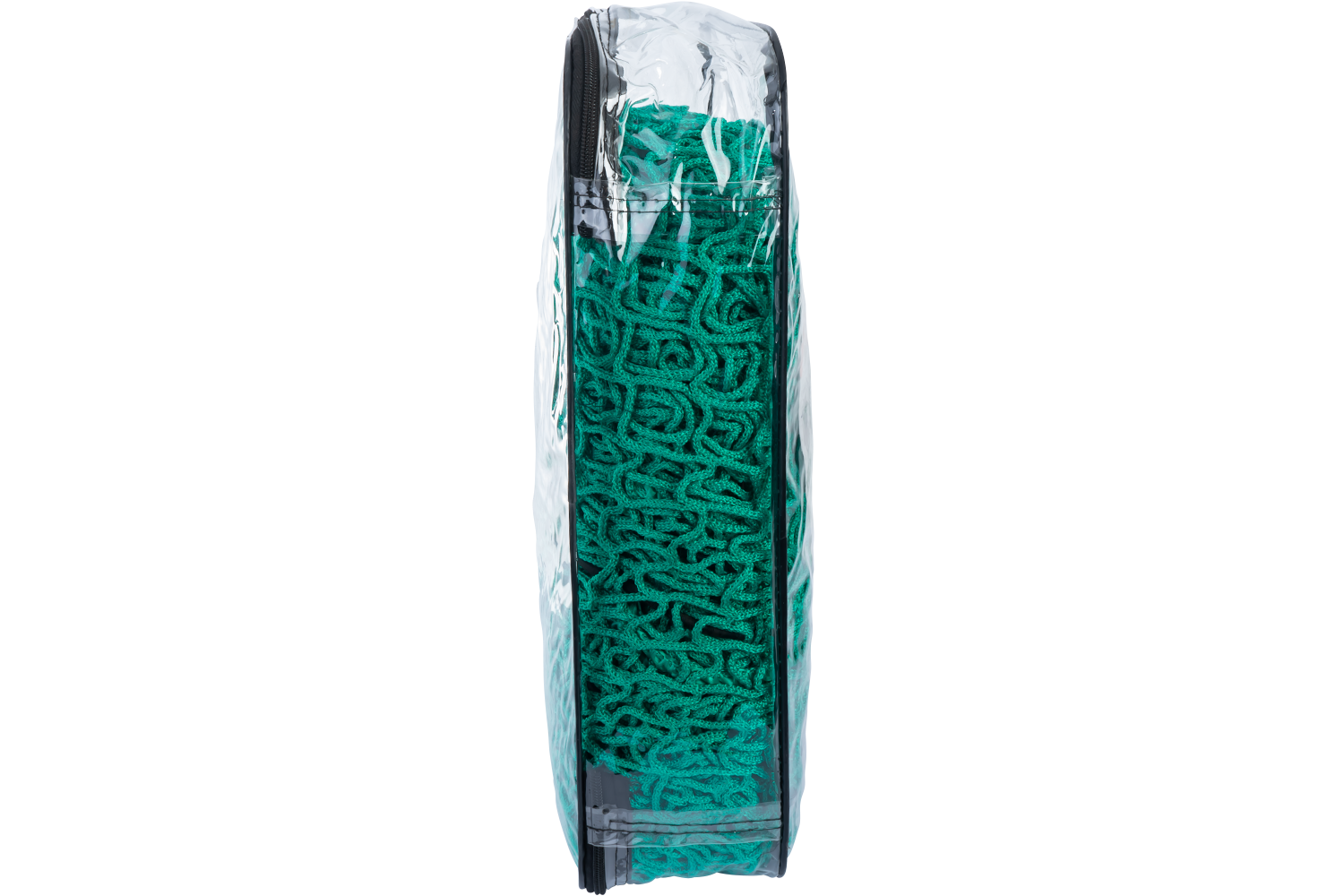 Le maillage est en fibre. Il est fini avec un bord renforcé sur les bords. De plus, un cordon en caoutchouc entoure le filet, ce qui facilite la fixation du filet à la remorque.