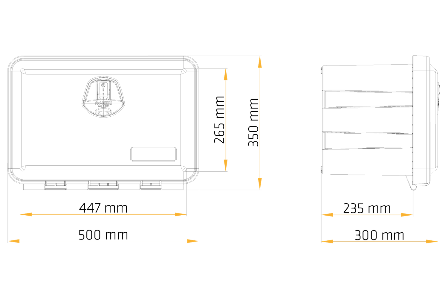 La boîte est fabriquée en polypropylène et en nylon de haute qualité, renforcés par des nervures, ce qui augmente sa durabilité et sa résistance aux dommages mécaniques. Le matériau offre une protection exceptionnelle contre le feu, l'eau, la poussière, le carburant, les rayons UV et les températures extrêmes, ce qui en fait une solution idéale pour une utilisation intensive dans des conditions difficiles. Le couvercle de la boîte est équipé d'un joint en caoutchouc qui assure une étanchéité totale, empêchant l'eau et la poussière de pénétrer à l'intérieur . Cette conception protège efficacement les outils et équipements stockés contre les agressions extérieures néfastes, ce qui est particulièrement important en cas d'utilisation intensive sur des chantiers ou dans des conditions météorologiques difficiles.