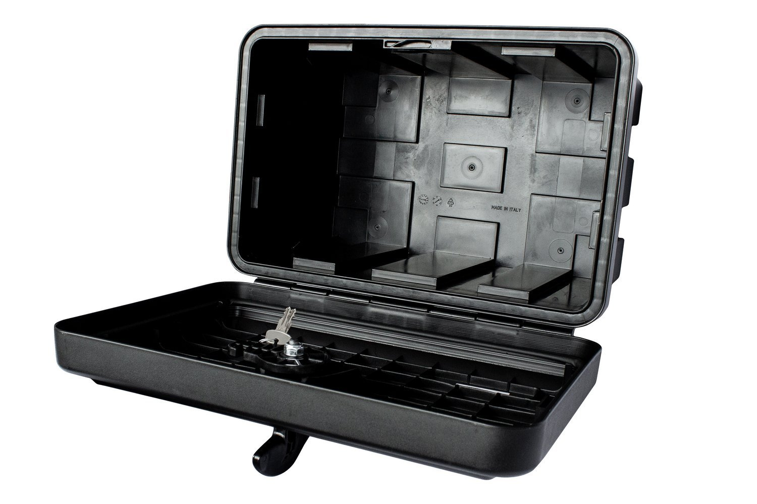 La boîte à outils DAKEN JUST 81100 aux dimensions de 500 mm de longueur, 350 mm de hauteur et 300 mm de profondeur est une solution pratique et fiable pour ranger le matériel nécessaire dans les véhicules et remorques. D'une capacité de 27 litres et d'une charge optimale de 40 kg, elle permet un rangement sûr et pratique des outils et autres accessoires. Pour plus de sécurité, le coffre est équipé d'une serrure solide qui empêche toute ouverture accidentelle et protège le contenu contre le vol. L'ensemble comprend deux clés , ce qui garantit la commodité d'utilisation et la possibilité de partager la boîte avec d'autres personnes de l'équipe.