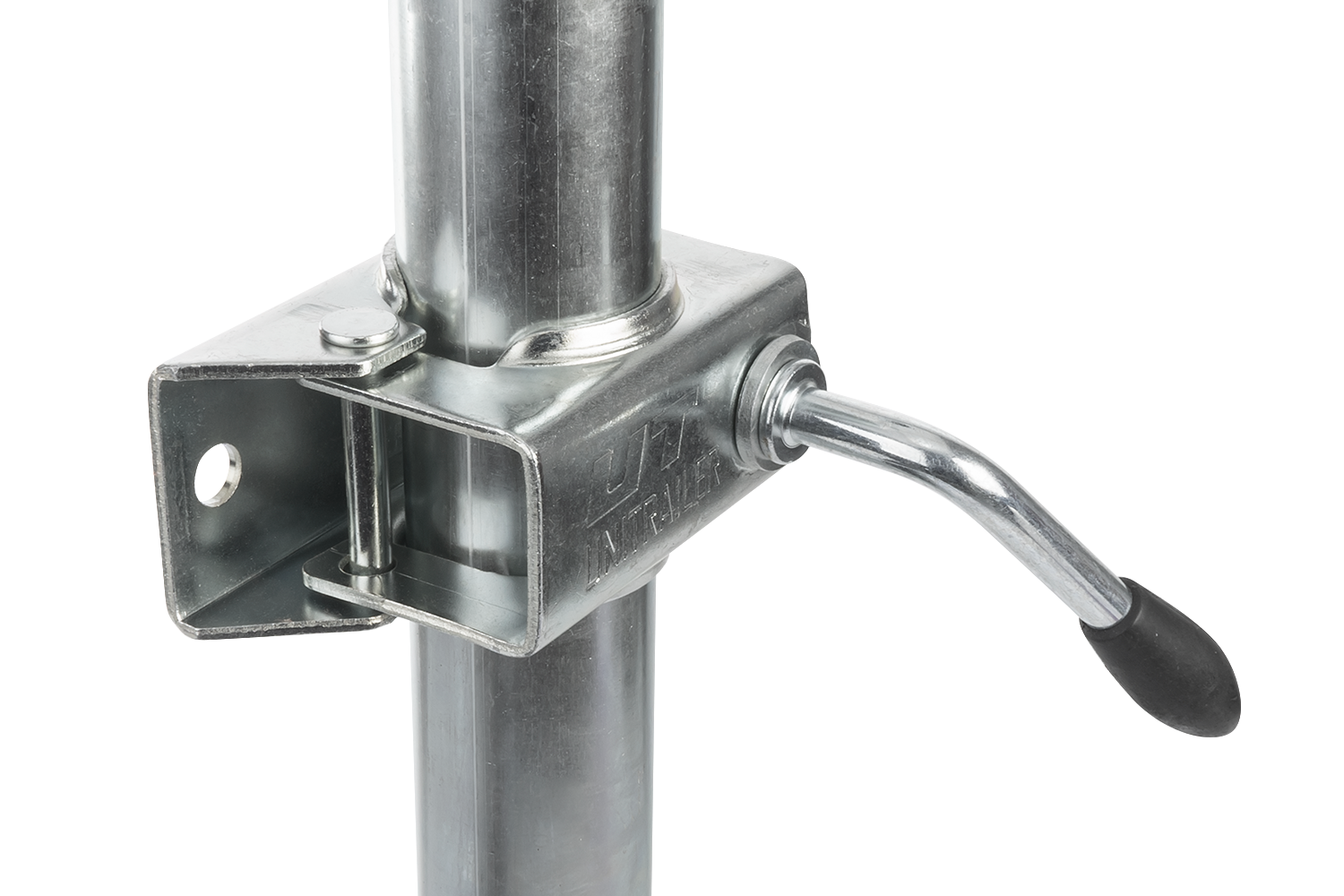 Roue jockey en acier galvanisé massif. Equipé d'un palier de butée pour un démarrage facile et d'un pneu en caoutchouc solide. Manivelle avec le logo Unitrailer. La pince de roue jockey Unitrailer est fabriquée en acier durable. Equipé d'un serre-joint à vis, il permettra une utilisation en toute sécurité de la roue de support de la remorque. Pour monter la pince, vous n'avez besoin que de deux vis de 10 mm de diamètre, qui, avec des écrous autobloquants, sont inclus dans le kit présenté.