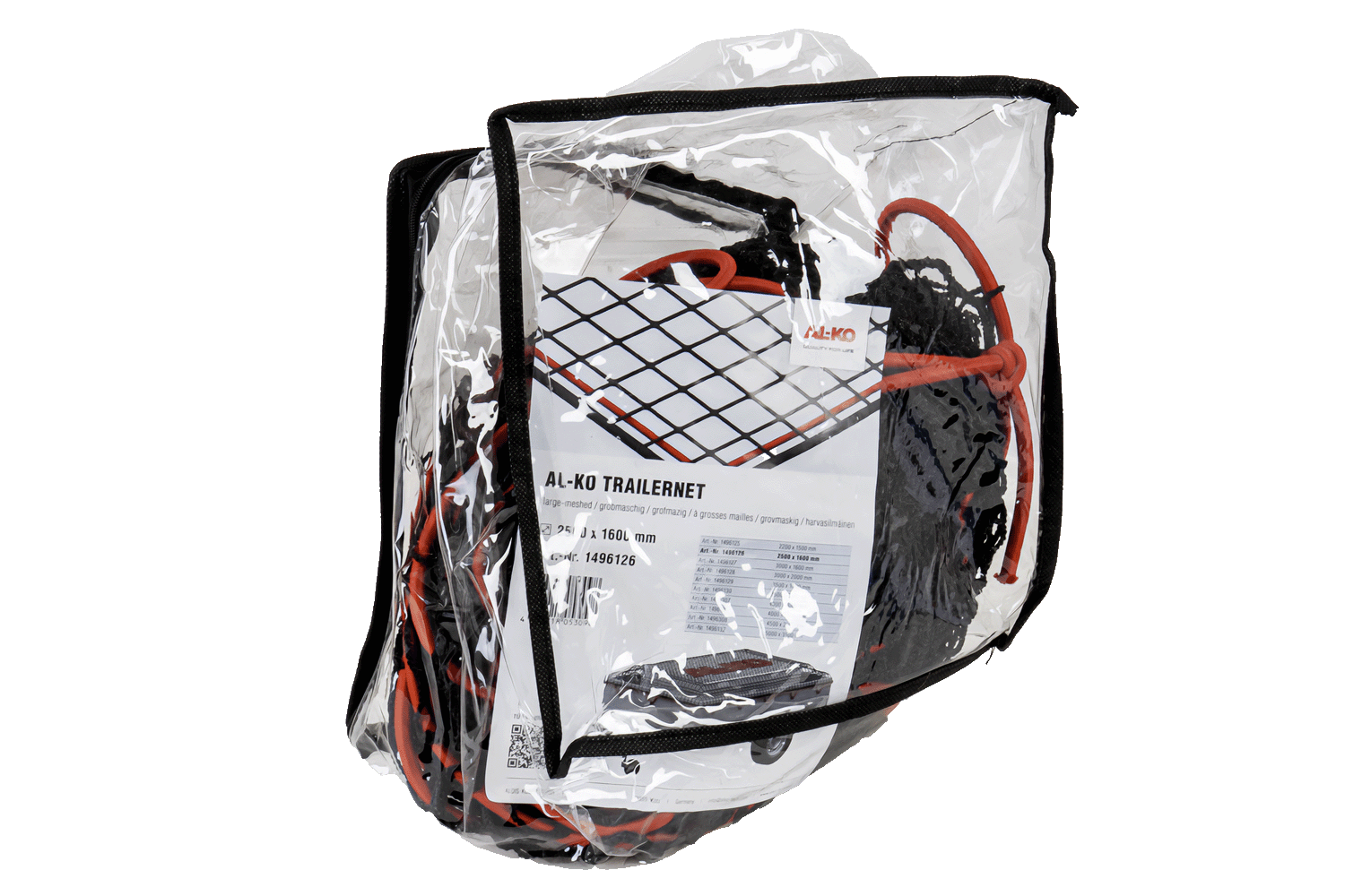 - Le filet de chargement AL-KO 1496126, de 1600 x 2500 mm avec mailles de 30 x 30 mm et cordon élastique, sécurise les chargements sur les remorques. Résistant aux intempéries et certifié TÜV SÜD, il garantit qualité et sécurité de transport.