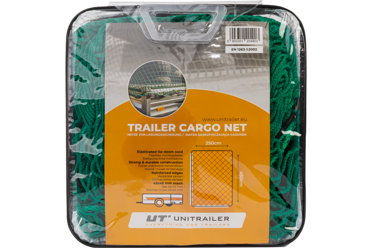 - Filet couvre remorque de la marque UNITRAILER, dimensions 2500x4000 mm. Le filet sécurise la cargaison lors de transport.