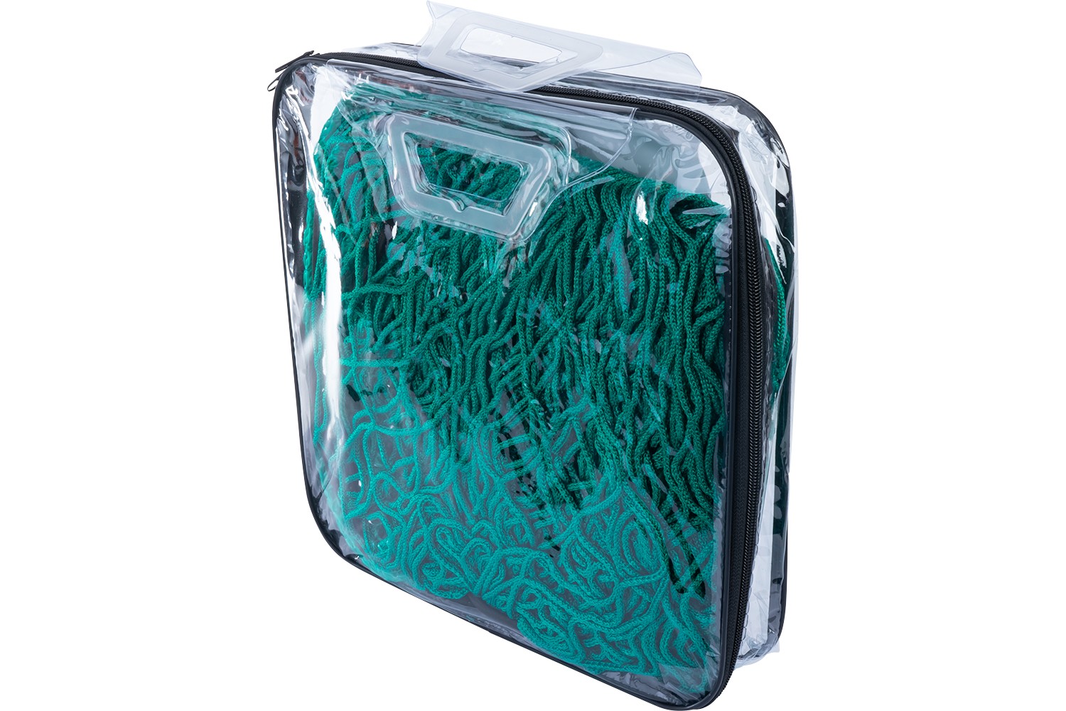 Filet de transport en fibre durable et avec bord renforcé et un bord élastique supplémentaire pour une installation plus facile. Le bord élastique n'est pas embouti donc sa longueur peut être ajustée.