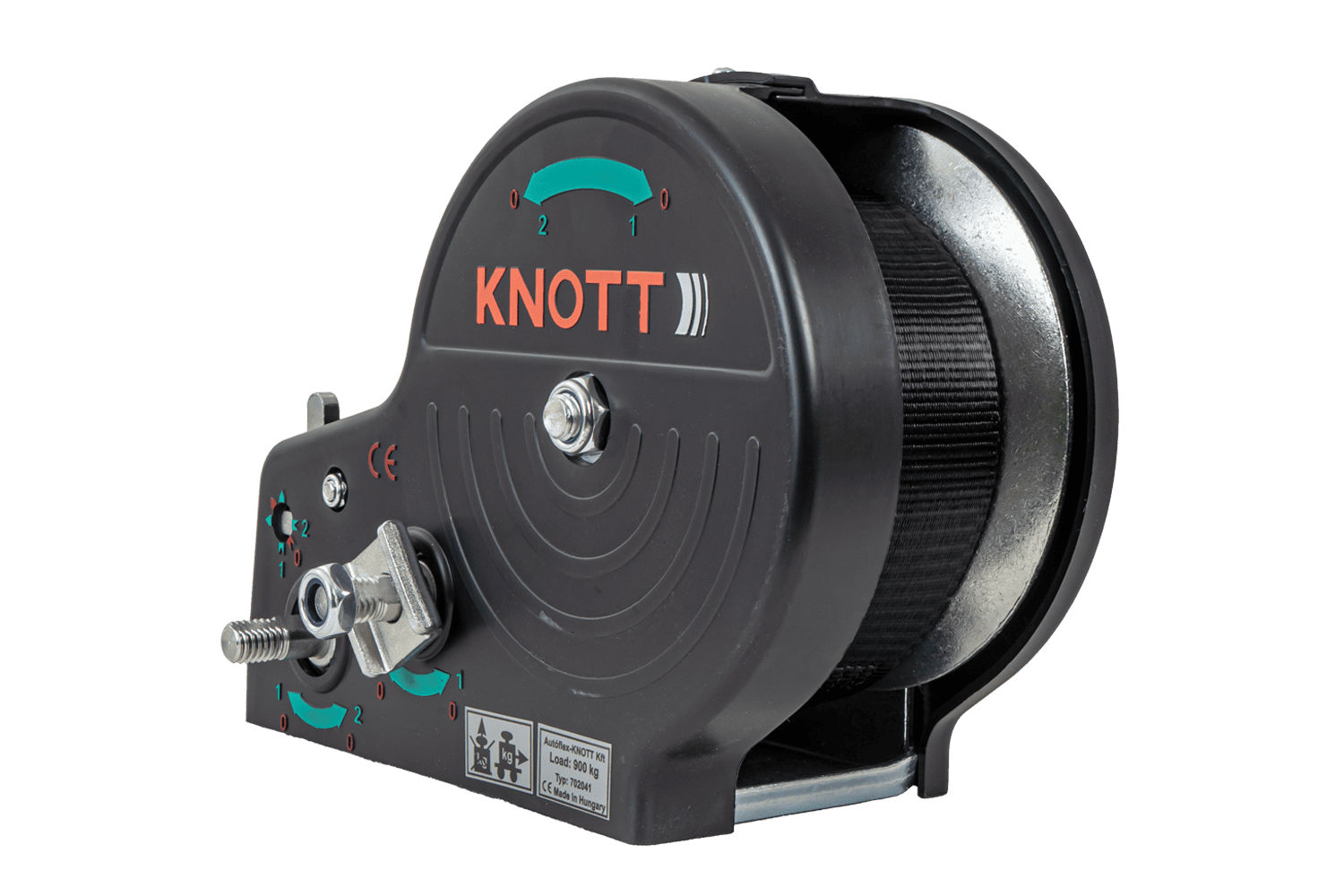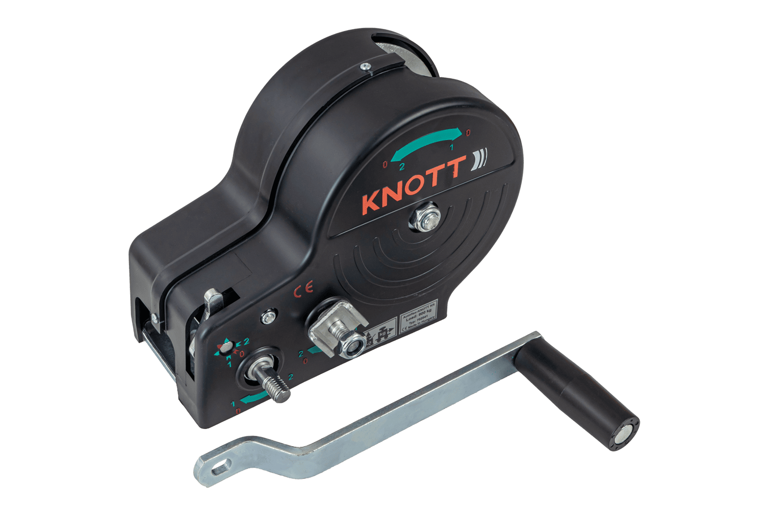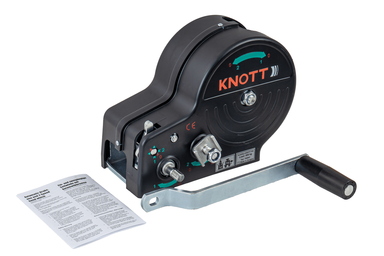 - Le treuil à câble KNOTT 6X0017.311 est un treuil manuel robuste, équipé d'un crochet et d'un carter fonctionnels, conçu pour la traction contrôlée de charges. Il offre une force de traction de 900 kg et est livré avec une sangle de 7 m de long et 50 mm de