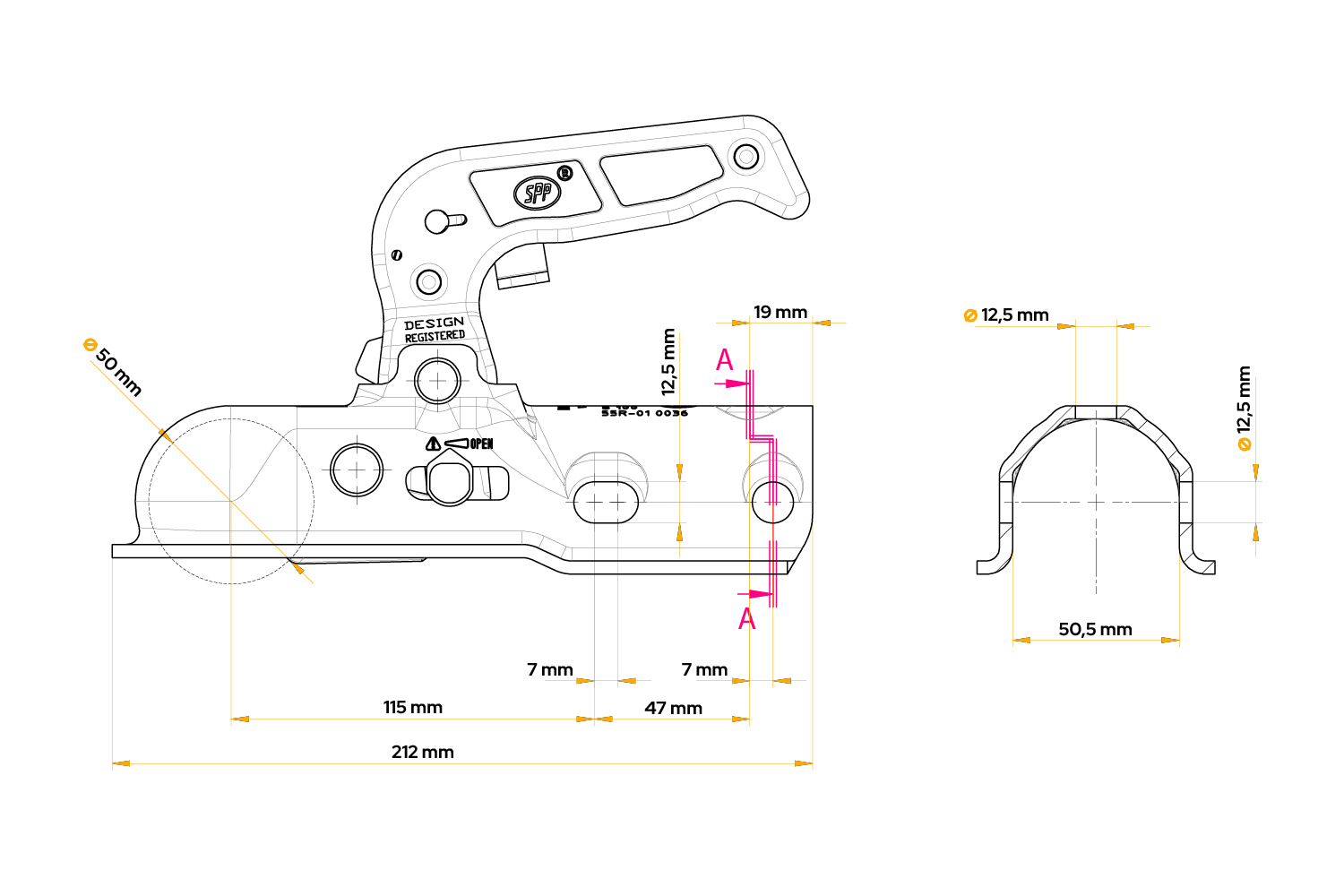 Attelage à boule STEELPRESS BC-1200C pour remorque de 1200 kg avec timon tubulaire de 50 mm