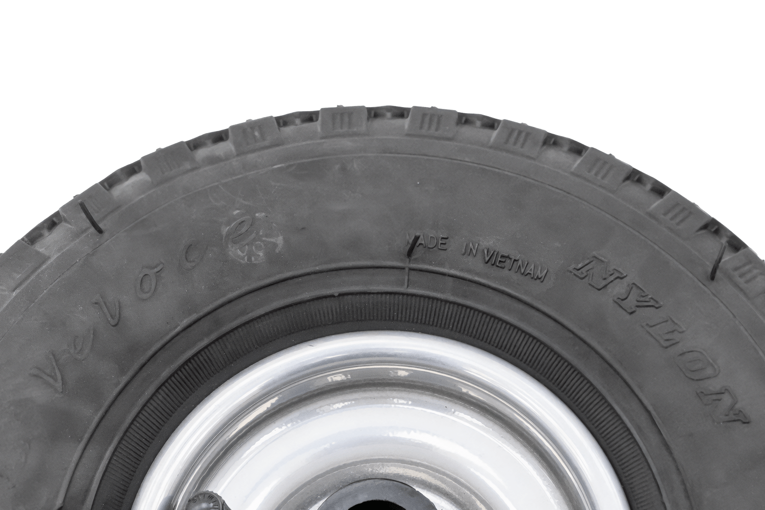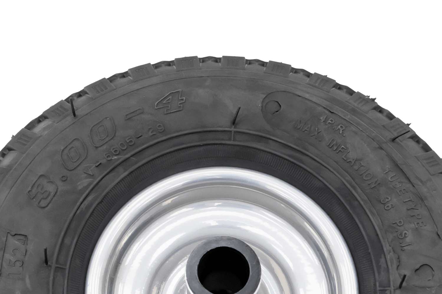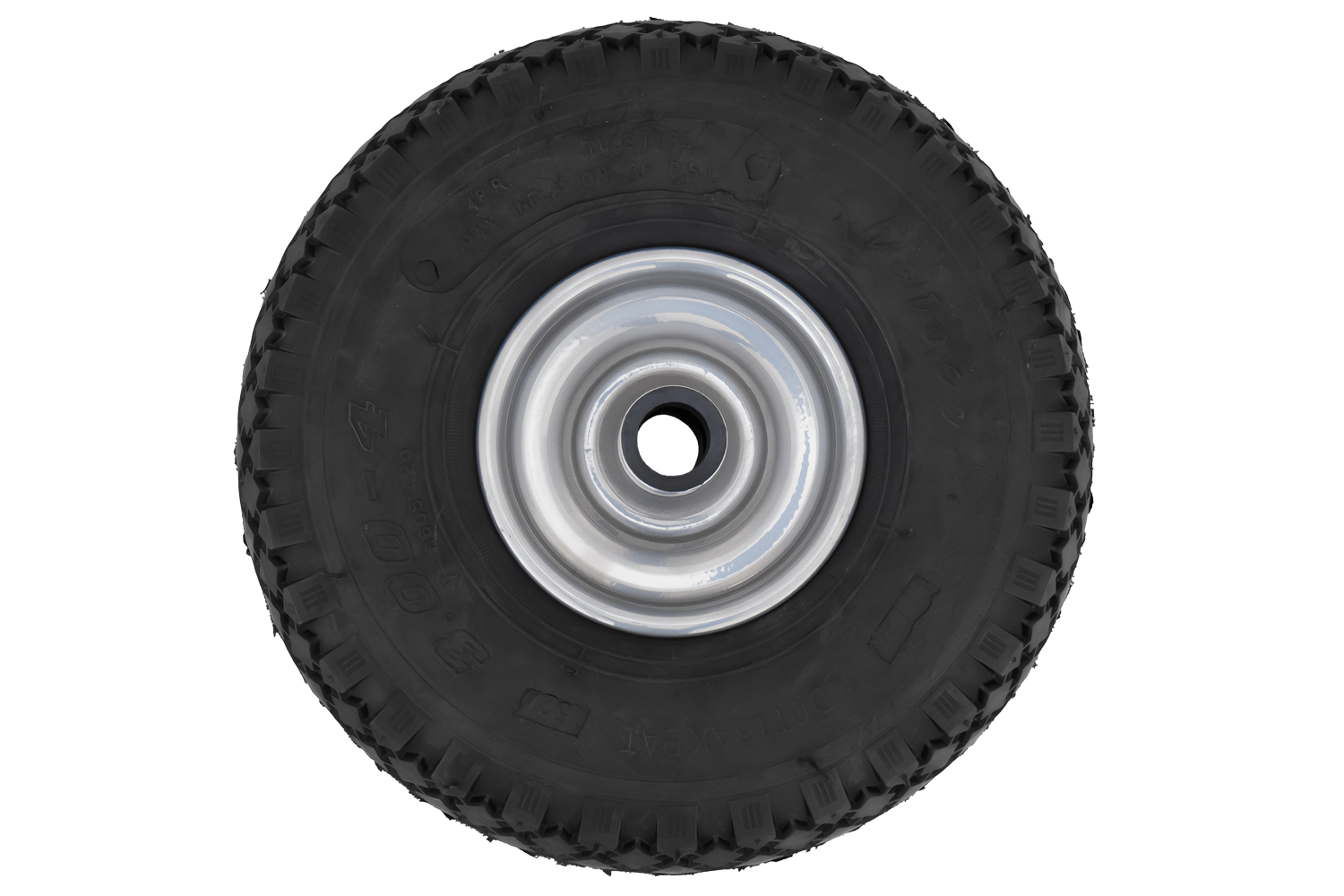 Il s'agit d'une roue de secours pneumatique conçue pour les roues jockey de remorque. Sa jante en tôle et ses roulements en plastique garantissent un fonctionnement léger et résistant à la corrosion, tandis que le pneu absorbe efficacement les chocs, facilitant le déplacement de la remorque dans l'allée, la cour ou l'atelier.